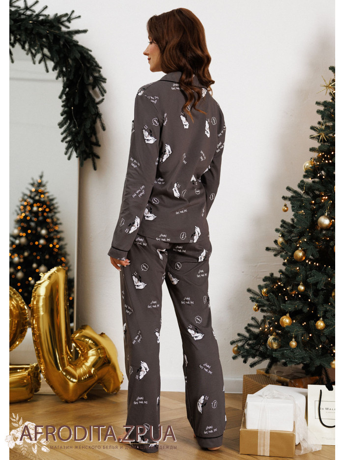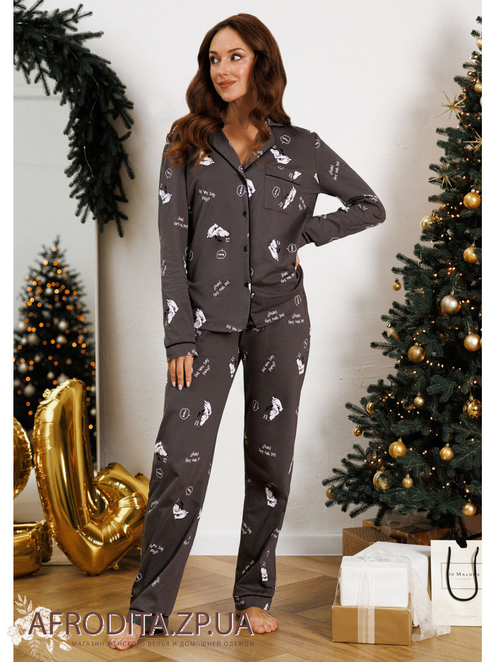 Женская пижама со штанами 1245-12014 из хлопка. Комплект состоит из рубашки с длинным рукавом, которая застегивается на пуговицы и штанов прямого кроя.