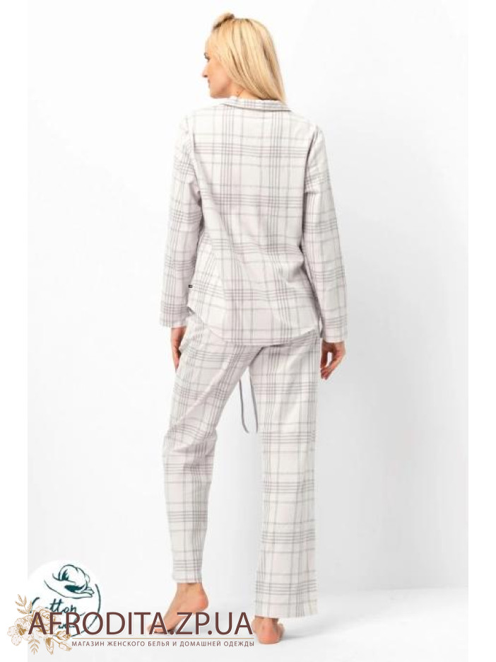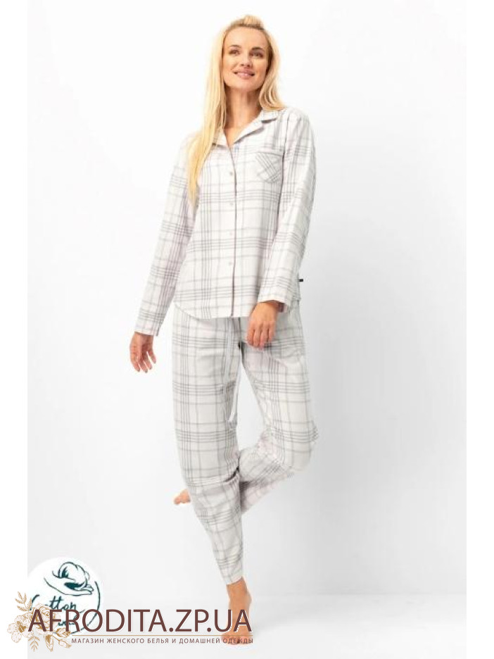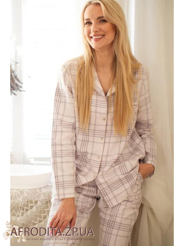 Женская пижама со штанами из хлопка Key 82622 от польского бренда. Модель в клетчатый принт из мягкой фланели, рубашка с длинными рукавами и отложным воротником, слева на груди расположен накладной карман. Штаны в клетку прямого кроя на резинке. Донная модель может послужить отличной идеей для подарка близким вам людям.