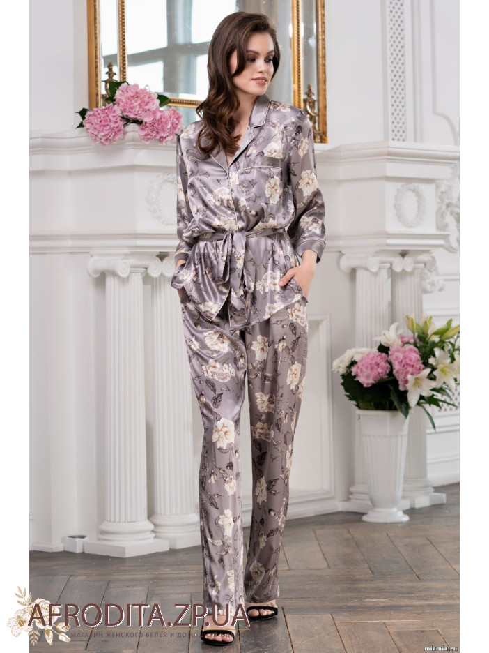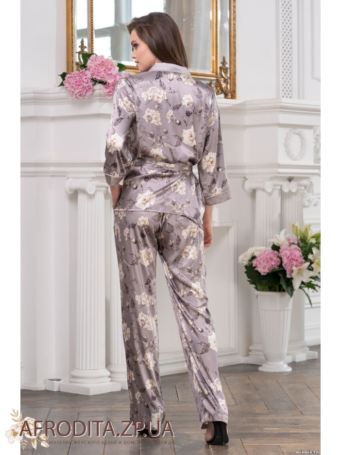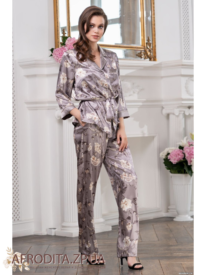 Элегантный комплект-двойка Mia-Amore из смесевого шелкового полотна с изящным принтом состоит из жакета и брюк. Жакет на пуговицах, с рукавами ¾. Линию борта и рукавные манжеты украшают тонкие контрастные канты. К жакету прилагается пояс. Брюки выполнены из смесевого принтованного шелкового полотна, боковые швы и манжеты украшают контрастные канты в боковых швах кармана.