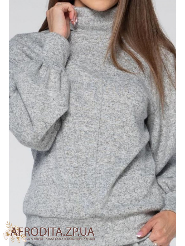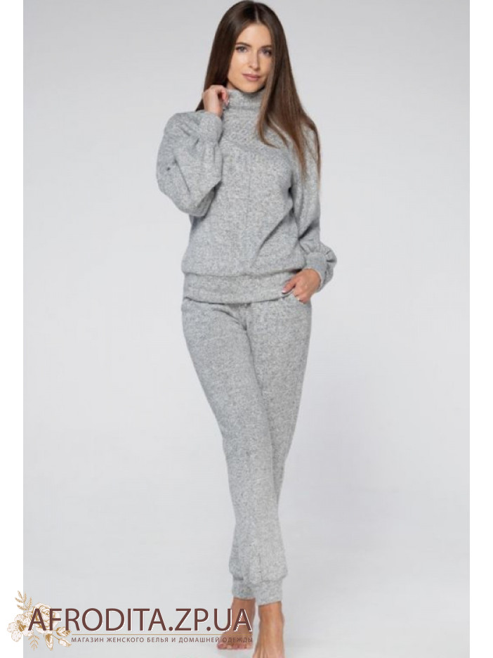 Женский домашний костюм Shato 2107 изготовленный из мягкой вискозы. Комплект состоит из джемпера с длинными рукавами и высоким воротником и штаны на резинке прямого силуэта.