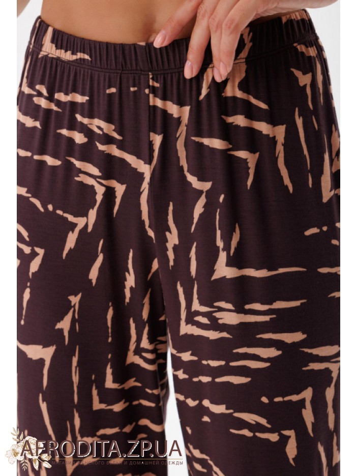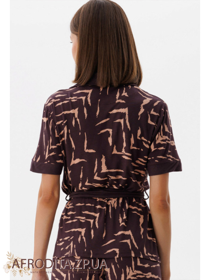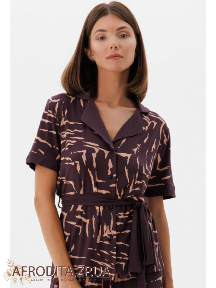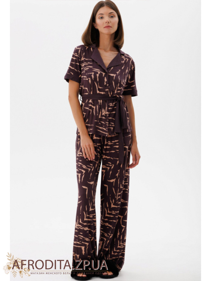 Женский домашний комплект со штанами из нежной и очень приятной к телу вискозы от украинского бренда Roksana. Пижама состоит из рубашкт с короткими рукавами которая застегивается на пуговицы, линия талии регулируется поясом. Штаны свободного кроя на резинке. Модель выглядит очень элегантно и может служить хорошей идеей для подарка близкому вам человеку.