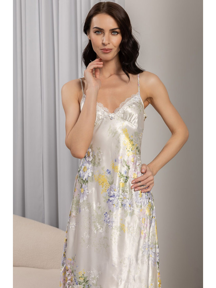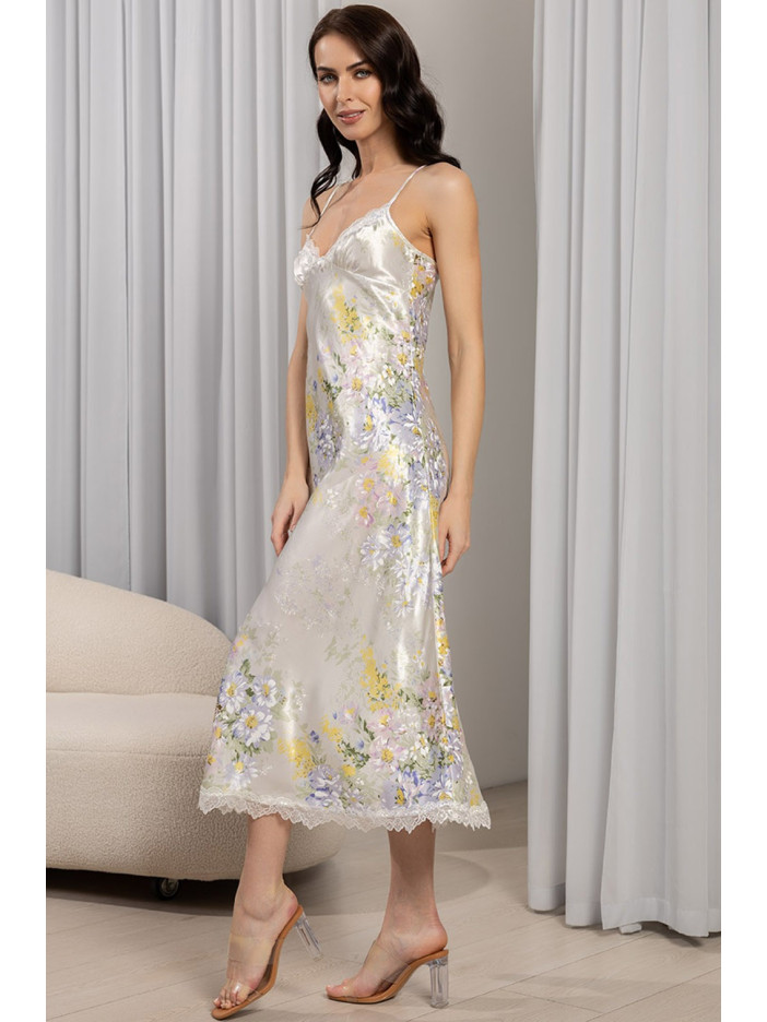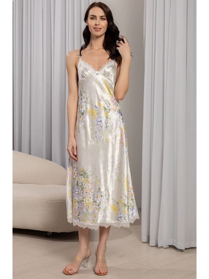 Роскошная длинная женская комбинация "Лилианна" 5996 от Mia-Amore из натурального шелка. Сорочка на тонких бретелях с боковым разрезом. По лифу и нижней часть комбинации расположено тонкое французское кружево.Состав 70% натуральный шелк, 25% полиэстер, 5% эластан.