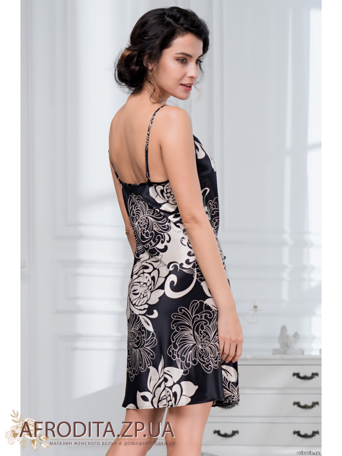 Короткая атласная сорочка из коллекции "Да Винчи" 8440 на тонких бретелях от Mia-Amore из искусственного принтованного шелка. Отделка лифа изящно декорирована кантом и украшена двухцветным бантиком с подвеской в виде черных кристаллов.Состав 100% полиэстер