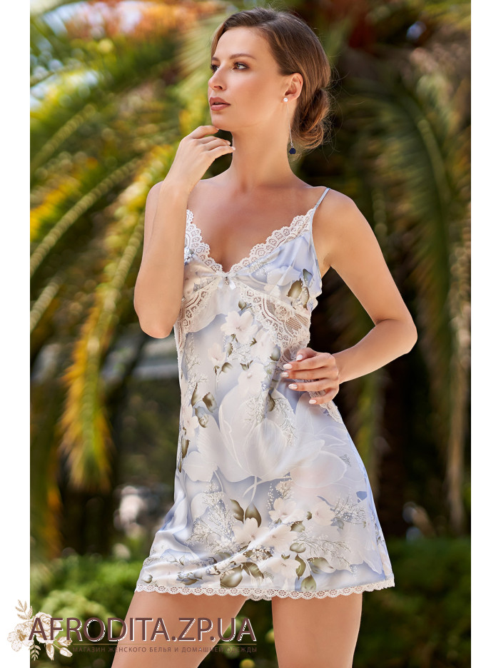 Короткая сорочка "Новелла" 3600 от Mia-Amore на тонких бретелях с отрезными чашками из принтованного смесового шелкового полотна, верх декольте и низ сорочки декорирован кружевом, под линией подреза расположены кружевные вставки. Сорочка украшена бантиком с подвеской.Состав 70% натуральный шелк, 25% полиэстер, 5% эластан