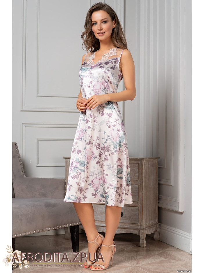 Длинная сорочка MIRACLE 3548 от Mia-Amore на широких бретелях, выполнена из принтованного смесового шелка. Верх сорочки украшен ажурным кружевом. Декор - атласный бантик с подвеской по центру выреза.Состав 70% натуральный шелк, 25% полиэстер, 5% эластан