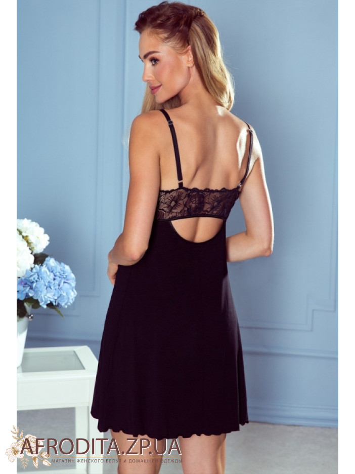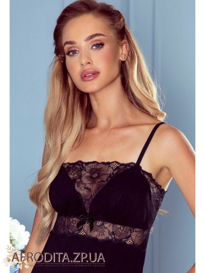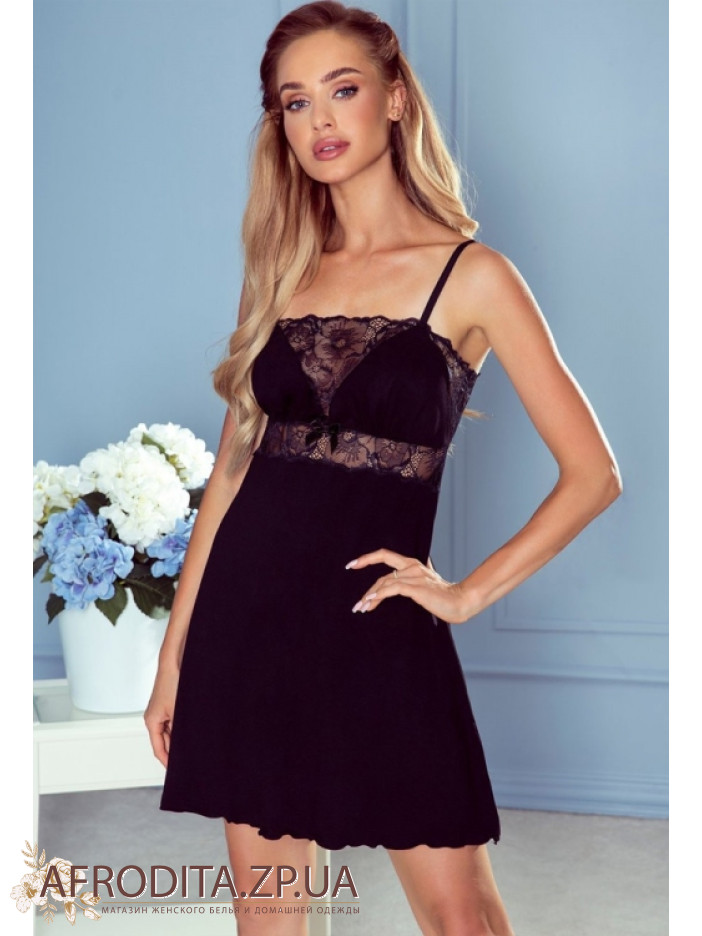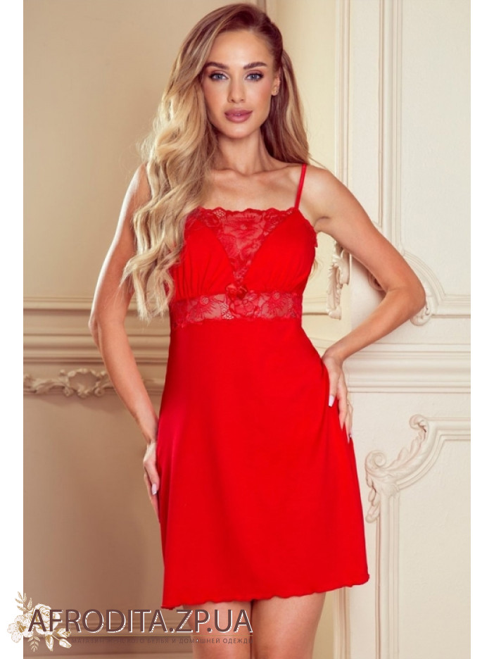 Ночная сорочка з вискозы Eldar 234380 от польского бренда из мягкой и приятной к телу вискозы представленная в двух популярных цветах, черный и красный. Сорочка на тонких бретелях приталенного кроя, V-образная область декольте украшена кружевом в тон изделия. Под грудью в качестве декора расположена вставка из кружева. По центру расположен кокетливый бантик.