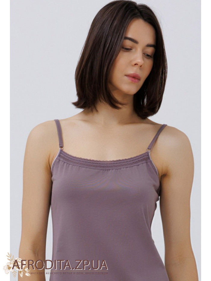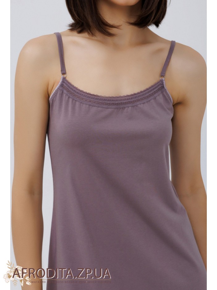 Ночная сорочка из высококачественного хлопка 1766-16681 от Roksana. Модель на тонких регулируемых бретелях длинной выше колен. Сорочка с боковыси разрезами, лиф а также низ сорочки украшен кружевом в тон изделия. Данную модель можно укомплектовать с халатом 1563-16681.