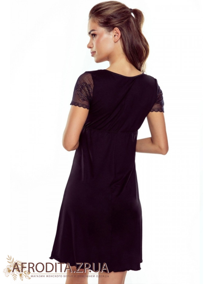 Ночная женская сорочка Eldar 234372 от польской торговой марки изготовленная из вискозы черного цвета. Сорочка с короткими рукавами с подрезом под грудью, длинна модели выше колен. Область декольте, рукава а также под грудью сорочка украшена полупрозрачным кружевом. Модель очень приятная к телу и выглядит очень элегантно, может служить хорошей идеей для подарка близкому вам человеку.