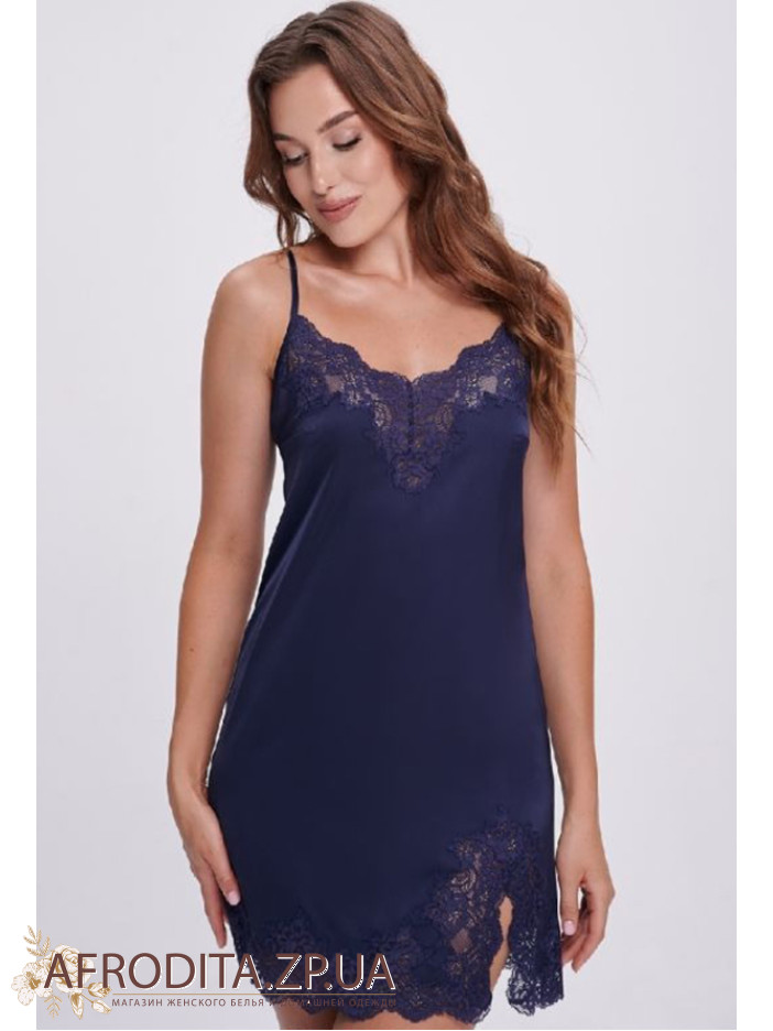 Соблазнительная ночнушка Shato из мягкого шелка Armani тёмно-синего цвета подчёркивает женственность и изящество силуэта. Полуприлегающий крой, регулируемые тонкие бретели и V-образное декольте создают идеальную посадку, а аккуратный разрез добавляет лёгкую сексуальность. Нежные кружевные вставки по линии выреза и низу придают образу романтичный шарм. Идеальный вариант для комфортного сна и в качестве изысканного подарка.