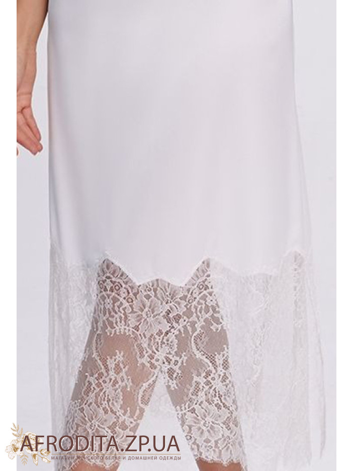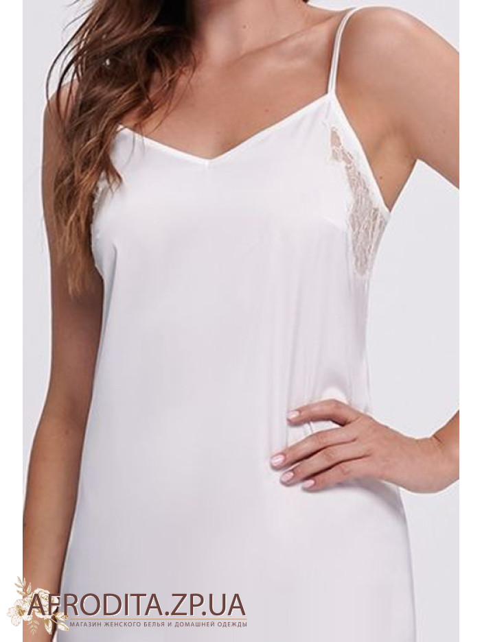 Элегантная ночнушка Shato 2702 ecru из мягкого шелка Armani белого цвета подчёркивает изящество и женственность образа. Полуприлегающий силуэт длиной ниже колен, тонкие регулируемые бретели и V-образное декольте создают эффектную посадку, а высокие боковые разрезы добавляют чувственности. Ажурное кружево на спинке и по низу придаёт модели утончённый шарм. Идеальный вариант для комфортного сна и в качестве изысканного подарка.