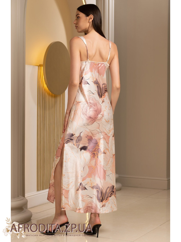 Элегантная длинная сорочка Пионы 4218 от Mia-Amore с регулируемым бретелями и отрезными чашками выполнена из смесового шелка. Сбоку сорочки эффектный разрез.