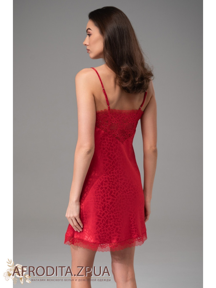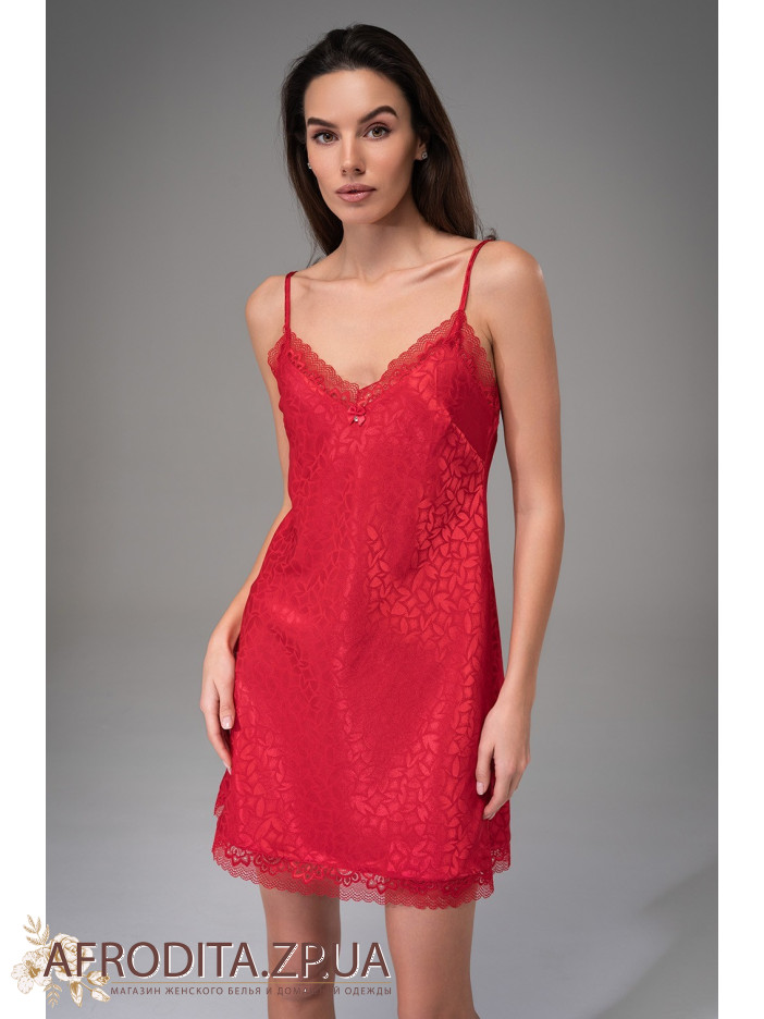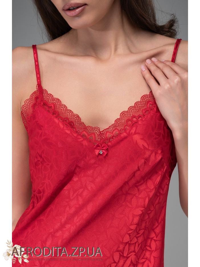 Женская короткая сорочка Джоанна 7310-2 от итальянской торговой марки Mia-Amore на тонких регулируемых бретелях без подреза под грудью, выполнена из однотонного жаккардового искусственного шелка красного цвета. Ажурное кружево расположено верху и низу сорочки. По центру выреза сорочки - атласный бантик с кристаллом Swarovski. Модель выглядит очень эффектно и сексуально. Может послужить хорошей идеей в качестве подарка.