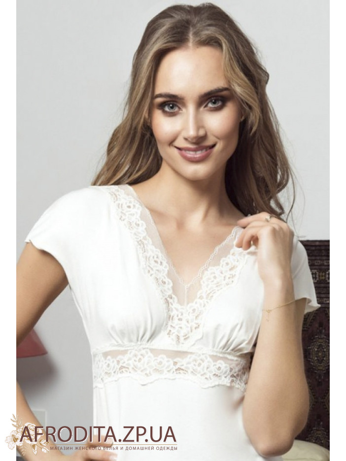 Женская ночная сорочка Eldar 234381 из мягкой и приятной к телу вискозы. Модель приталенного кроя длинной выше колен, глубокий вырез декольте и область под грудью декорирована кружевом в цвет изделия. Сорочка выглядит очень роскошно и элегантно и может служить хорошей идеей для подарка близким вам людям.