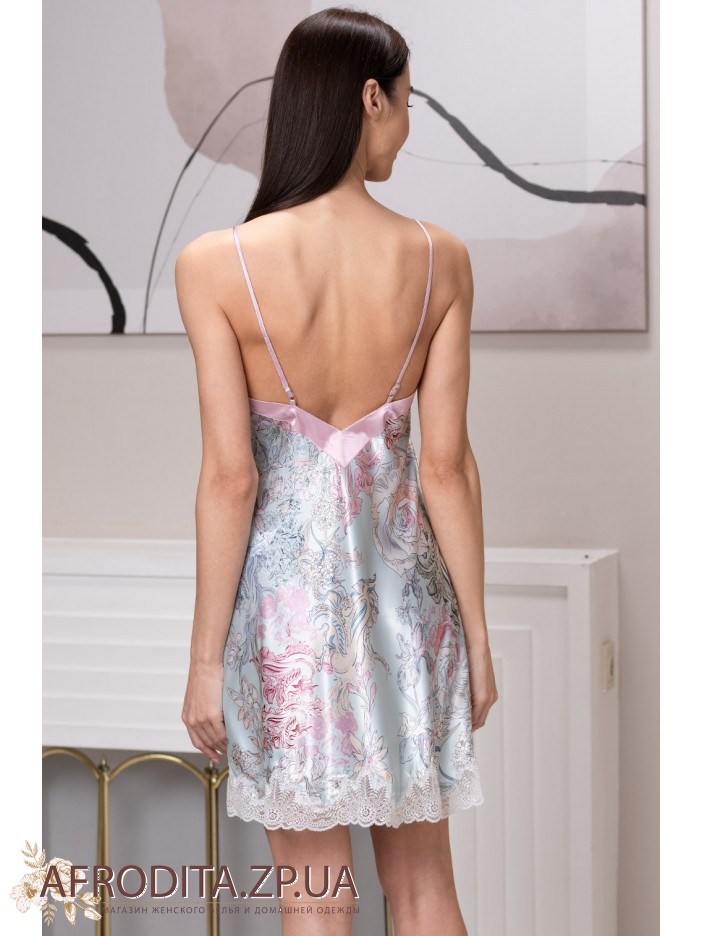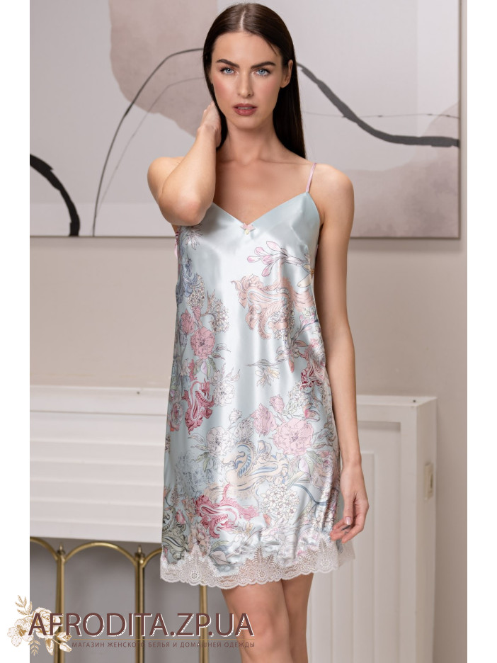 Женская ночная сорочка Габриель 4520 от Mia-Amore изготовленная из натурального шелка. Сорочка свободного кроя на тонких регулируемых бретелях длинной немного выше колен, низ сорочки украшен тонким кружевом. В области декольте в качестве декора расположен маленький атласный бантик с подвеской. Сорочка очень мягкая и приятная к телу и может бить отличной идеей для подарка вашем близким людям.