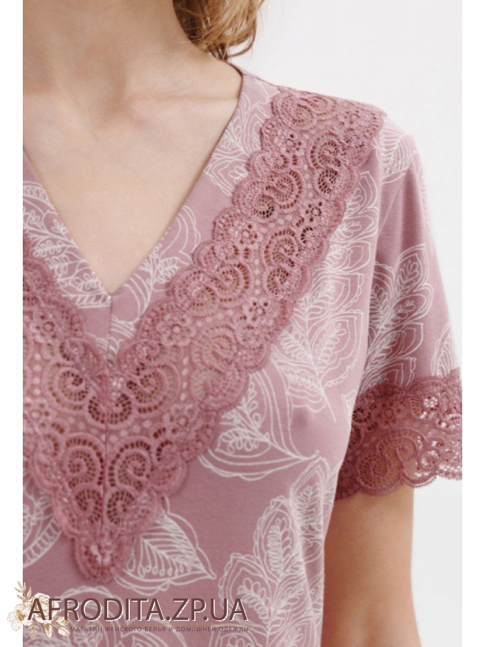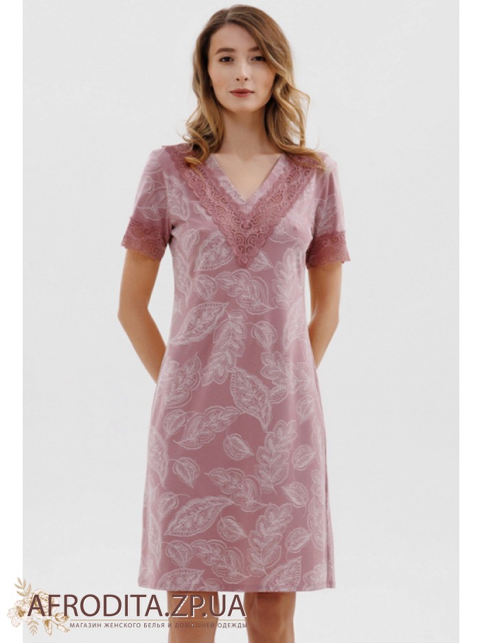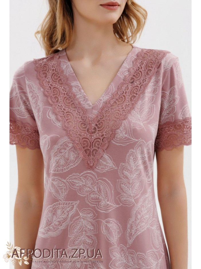 Женская ночная сорочка из хлопка Roksana 82702 от украинской торговой марки Roksana. Сорочка выше колен с короткими рукавами, края декорированы кружевом в тон изделия. Область декольте украшена кружевной вставкой. Сорочка очень комфортная и приятная к телу.
