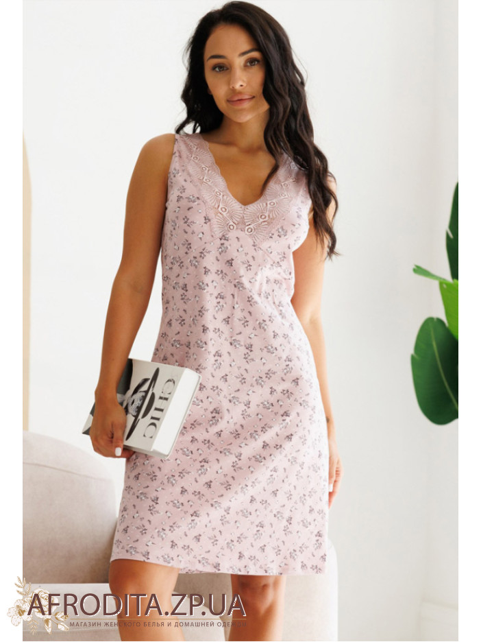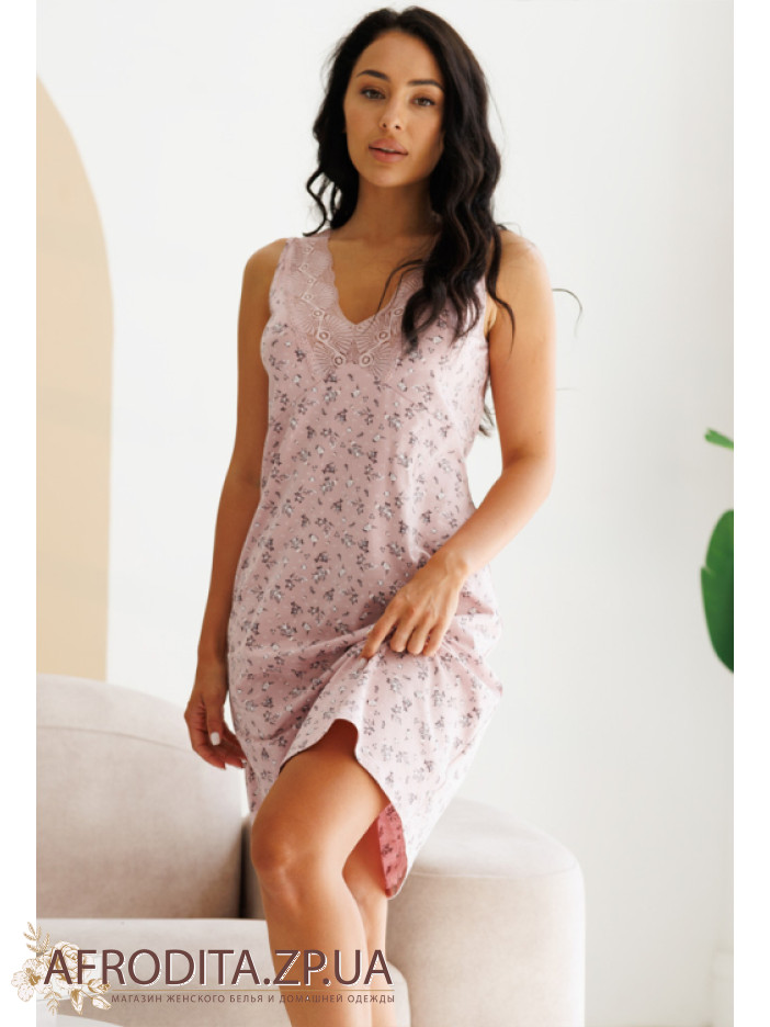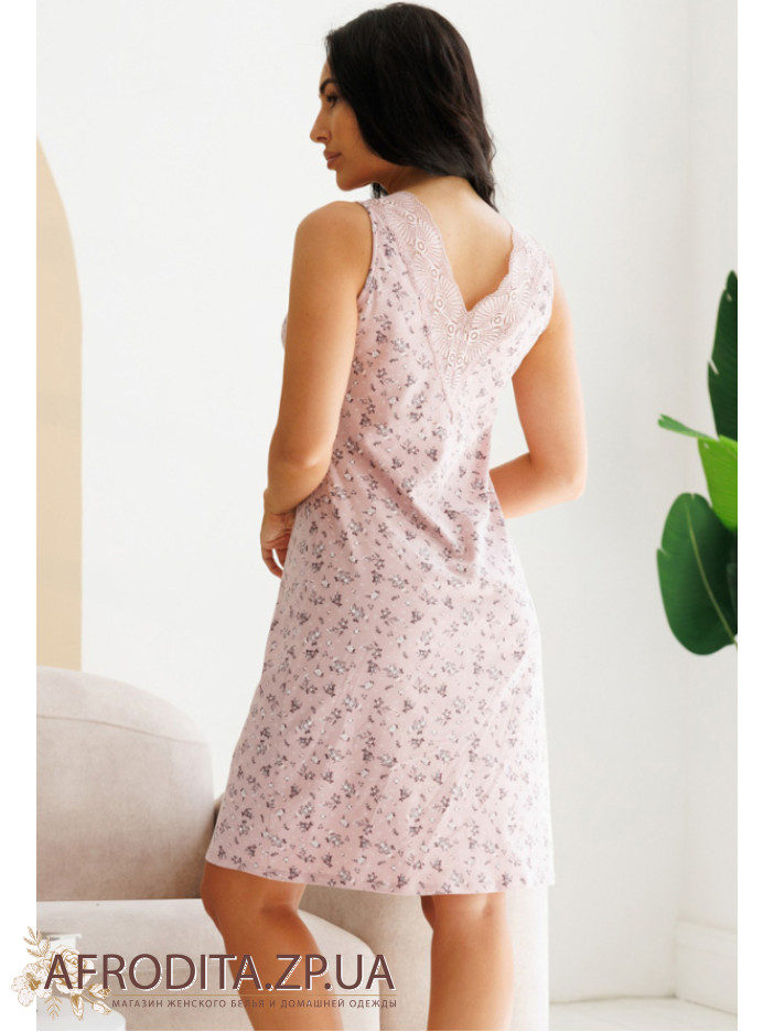Женская ночнушка Lila от украинского бренда Roksana — элегантная и комфортная модель для сна и домашнего уюта. Изделие выполнено из мягкого, приятного к телу хлопка розового цвета с тёмно-розовым цветочным принтом, имеет полуприлегающий силуэт и длину выше колен. Широкие бретели, глубокое V-образное декольте и такой же вырез на спине подчёркивают фигуру, а ажурные кружевные вставки придают ночнушке особую женственность и утончённость. Идеальный выбор для сна в любое время года и в качестве стильного подарка близкому человеку.