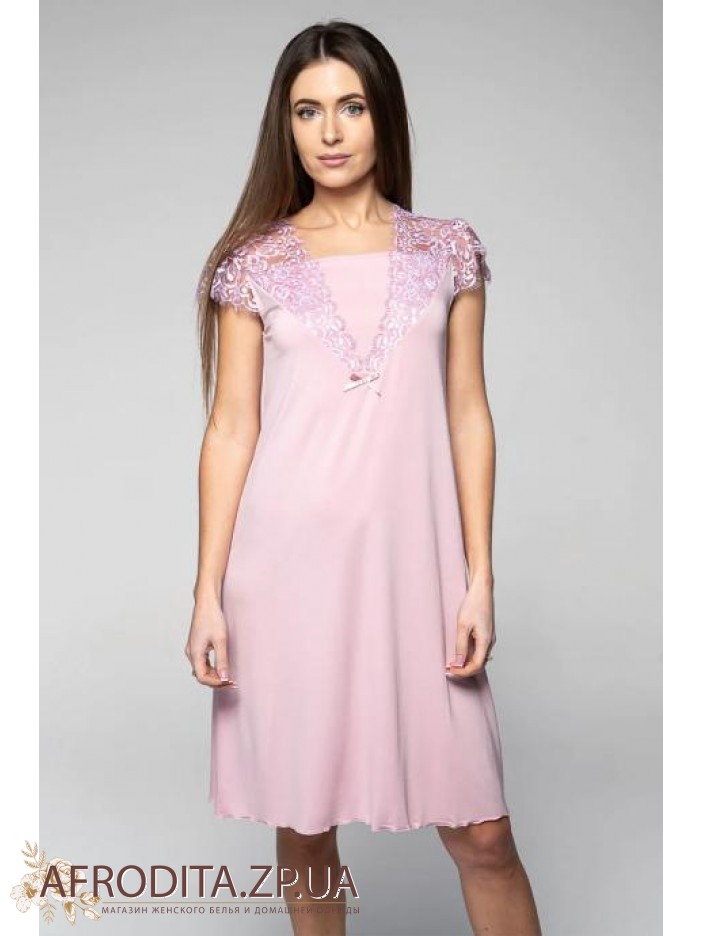Женская ночная сорочка Shato 2014 из мягкой вискозы. Сорочка длинной до колен с короткими рукавами, область декольте и плечики украшены кружевом.