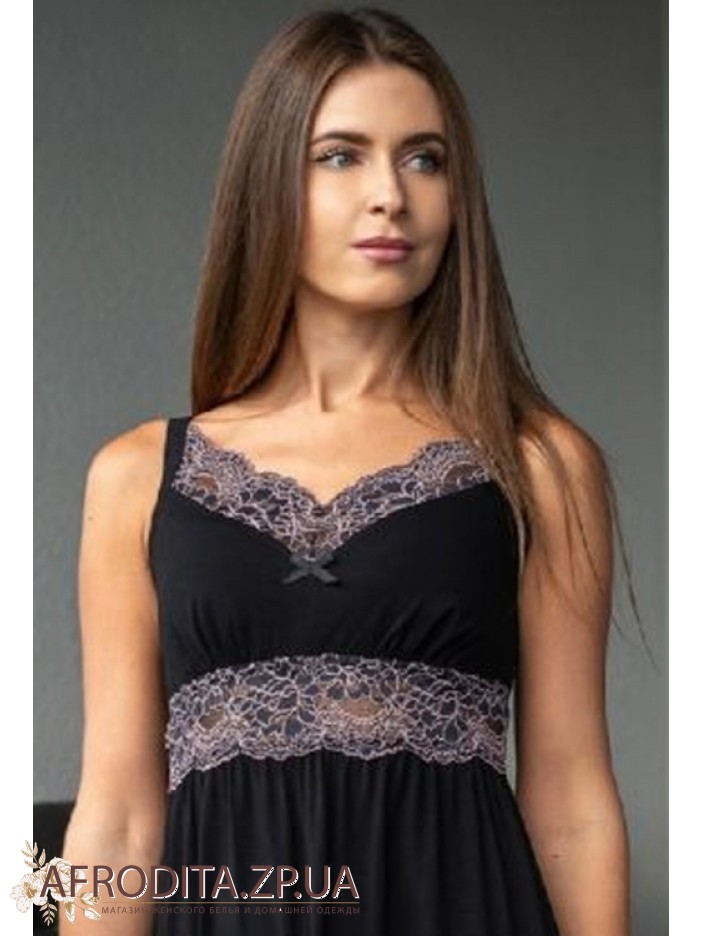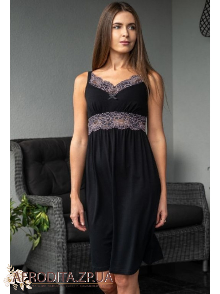 Женская ночная сорочка Shato 2230 из вискозы. Сорочка длинной выше колен на тонких бретелях, которые регулируются. V-образная линия декольте и линия под грудью декорирована ажурным кружевом. В качестве декора по центру расположен кокетливый бантик.