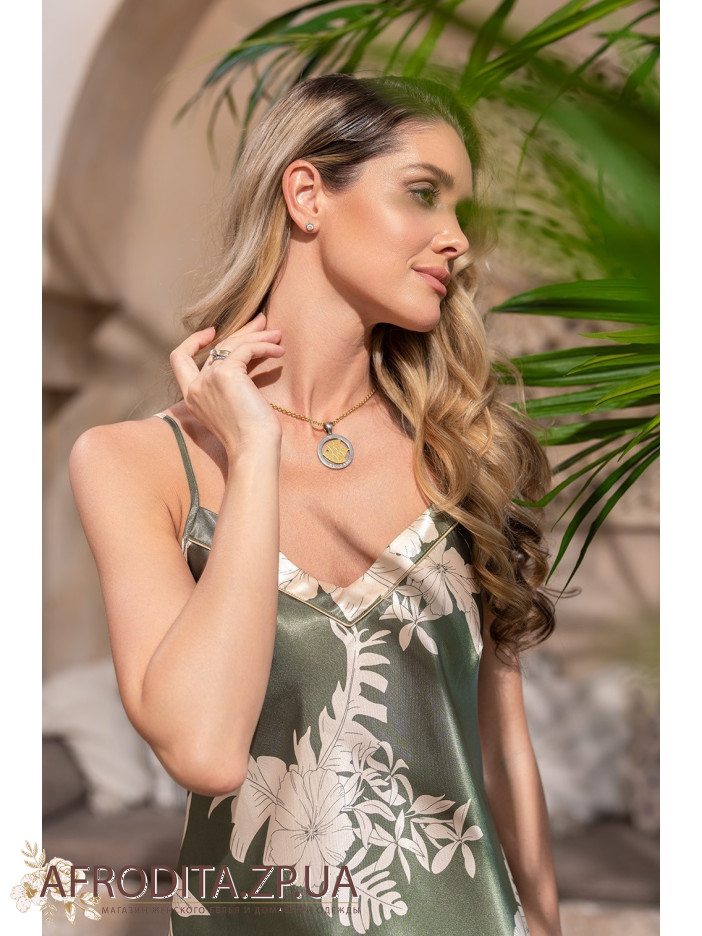 Женская шелковый сорочка Лоренса 4240 от Mia-Amore на тонких регулируемых бретелях, выполнена из принтованного смесового шелкового полотна. Сорочка длинной выше колен, лиф сорочки декорирован однотонным кантом. Модель отлично комплектуется с халатом Лоренса 4243. Модель очень мягкая и приятная к телу, отличный подарок близкому вам человеку.