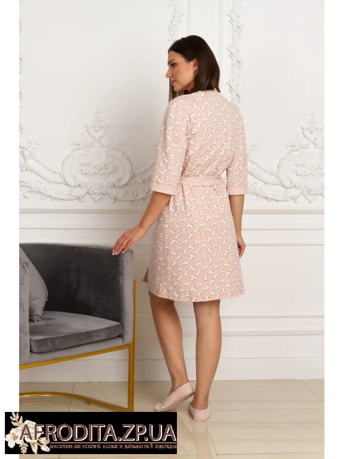 Халат женский для дома "Emmi" 72128 из хлопка. Халат на запах средней длины. Стильный капюшон придает изюминку данному изделию. В боковых швах расположены карманы. В комплекте прилагается пояс.