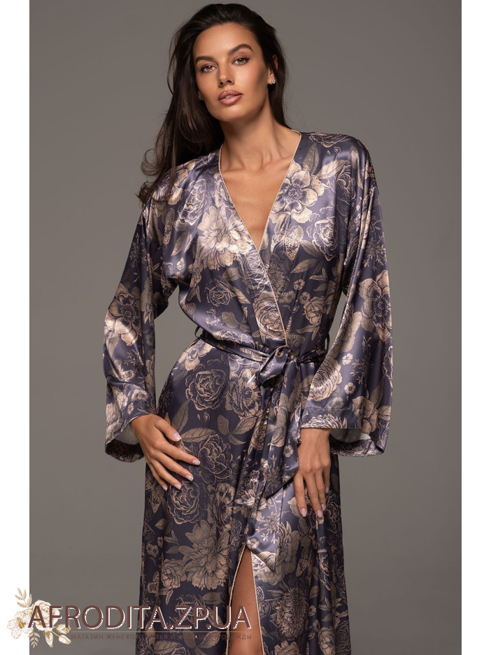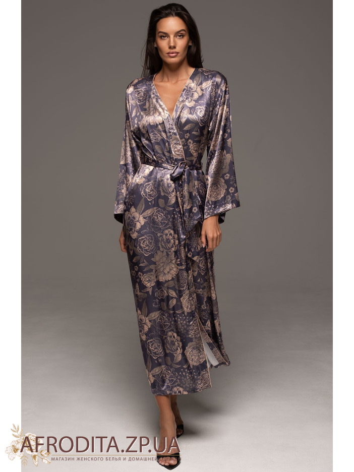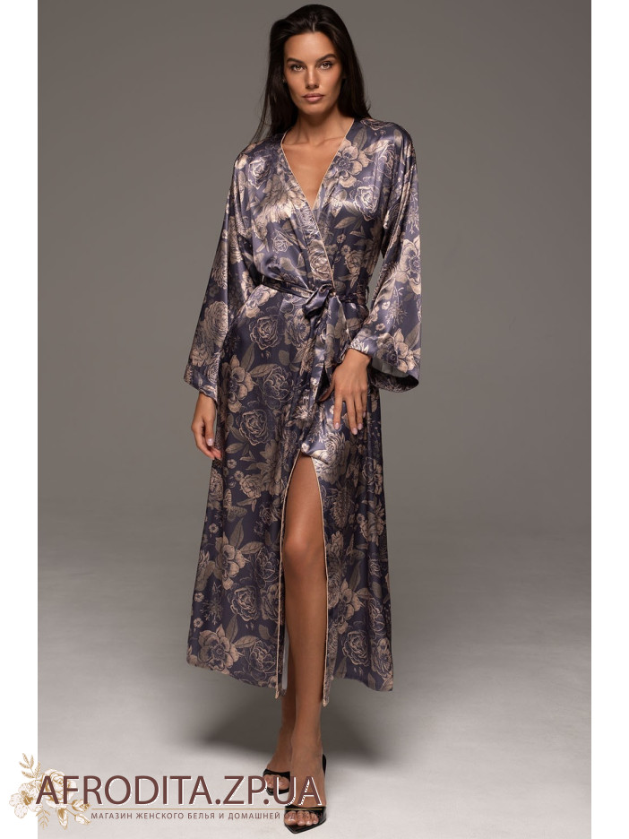 Длинный шелковый халат на запах Джаконда 4689 от Mia-Amore выполнен из принтованного смесового полотна. Низ рукавов, планка бортов отделаны контрастным кантом. Халат запахивается на пояс, в боковых швах есть карманы. Модель отлично комплектуется с сорочкой 4688. Отличный подарок близкому вам человеку.