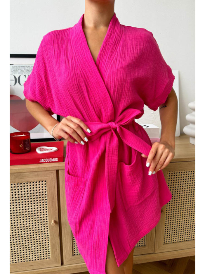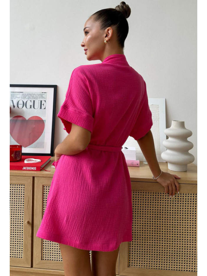 Яркий женский халат от украинского бренда Cosy — стильная и комфортная модель для дома, выполнен из качественного и мягкого муслина насыщенного малинового цвета, который добавляет образу выразительности и настроения, свободный силуэт и длина выше колена обеспечивают лёгкость и свободу движений, короткие рукава и удобные накладные карманы делают модель практичной в повседневной носке, халат завязывается на запах с помощью пояса, подчёркивая талию и создавая аккуратную посадку, идеальный вариант для домашнего отдыха и приятный подарок для близкого человека