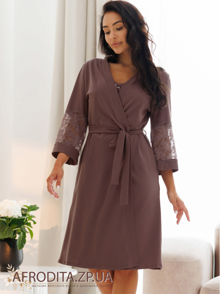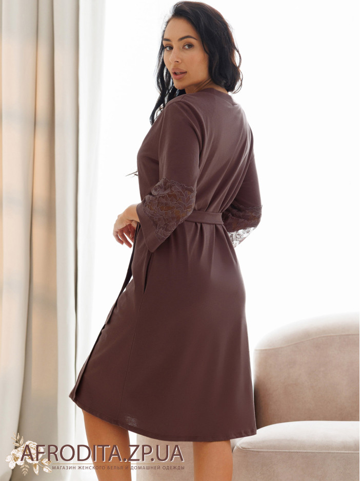 Этот женский халат – как пауза, которую ты даешь себе среди ежедневных дел. Мягкий натуральный хлопок нежно касается кожи, даря комфорт и свободу движений. Кофейный оттенок успокаивает, а кружевная обработка на рукавах придает деликатность и легкий шарм. Пояс на талии позволяет регулировать посадку, создавая силуэт, на котором хочется оставаться. Это не просто домашняя одежда – это часть твоего ритуала заботы о себе. Идеален для утренних моментов с чашкой кофе, вечернего релакса или минут, когда важно остановиться и выдохнуть. Халат, который заботится о тебе. Купить онлайн – как позаботиться о себе без лишних слов.