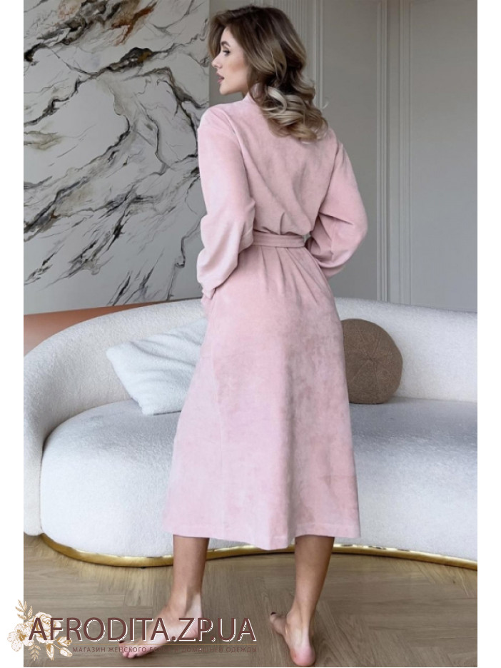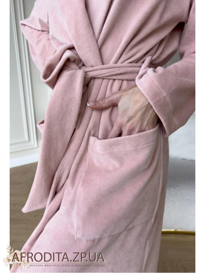 Элегантный женский халат от украинского бренда Cosy выполнен из мягкого и качественного велюра, который дарит ощущение уюта и комфорта с первых минут. Нежный персиковый цвет подчёркивает женственность и создаёт тёплый, утончённый образ, а классический воротник-шаль и длинные рукава добавляют элегантности. Длина ниже колен обеспечивает удобство в носке, а запах с поясом позволяет легко отрегулировать посадку по фигуре. Практичные накладные карманы по бокам делают модель ещё более комфортной для домашнего отдыха. Этот халат станет идеальным выбором для создания атмосферы уюта дома и прекрасно подойдёт в качестве стильного и заботливого подарка для любимого и близкого человека.