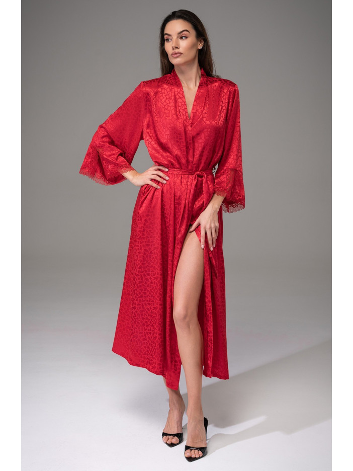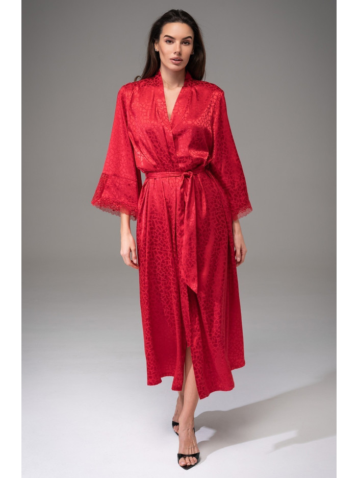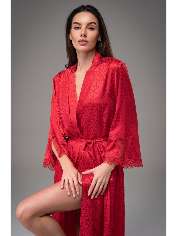 Длинный роскошный халат-кимоно Джоанна 7319-2 от Mia-Amore с широкими рукавами длиной ¾, края рукавов декорированы кружевом в цвет изделия. Халат выполнен из однотонного искусственного шелка на жаккардовой основе. В боковых швах расположены карманы. Линия талии подчеркивается за счет широкого пояса. Модель выглядит очень элегантно, ткань мягкая и приятная к телу. Отличная идея для подарка близкому вам человеку.