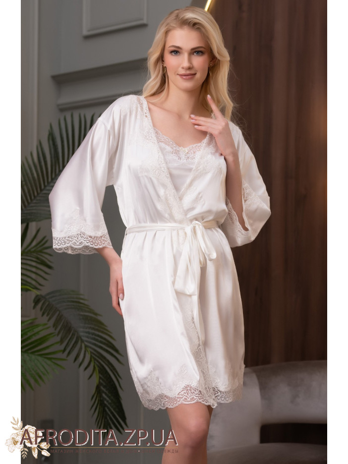 Короткий халат Ариана 3943-1 от Mia-Amore выполнен из смесового шелкового полотна. Борт, низ халата и рукавов декорированы тонким кружевом, вырезанная по форме кружева кромка ткани придает удивительную воздушность модели. Дизайн коллекции - студия Angelo Bellini (Milano)