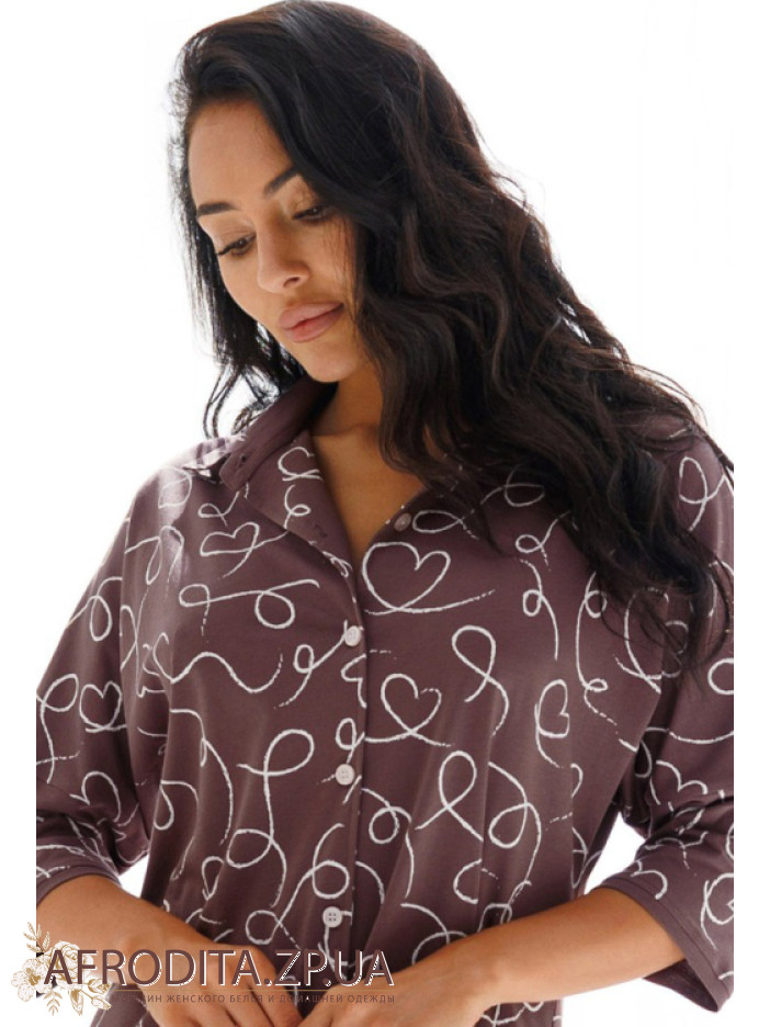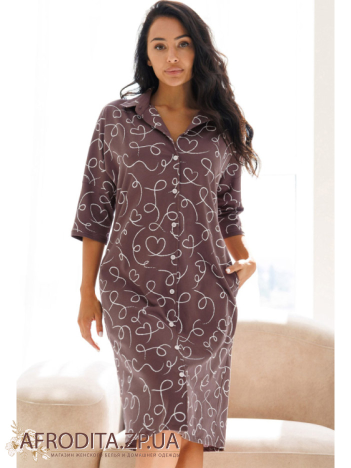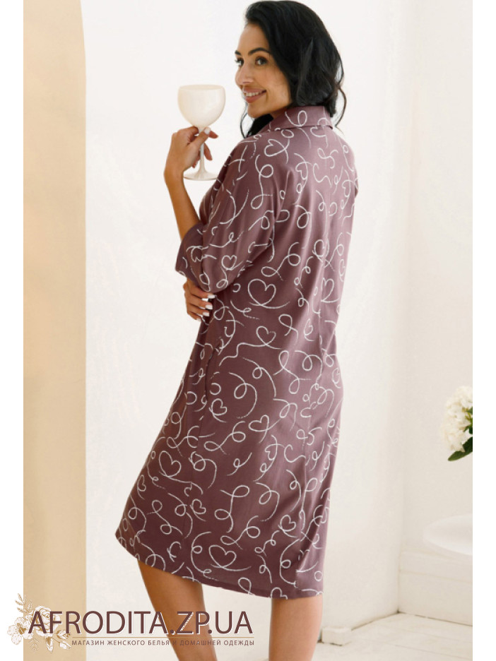 Женский халат на пуговицах изготовленный из высококачественного хлопка. Длинна халата до колен, рукава 3/4, по бокам расположены карманы. Края рукавов декорированы контрастным кантом, Воротник рубашечного типа.