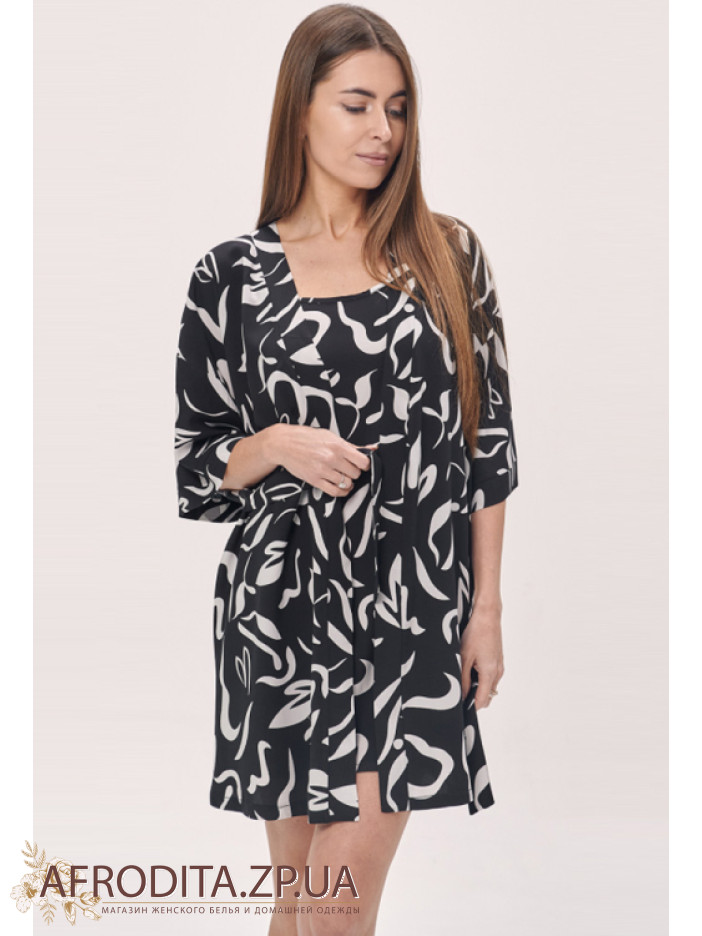 Женский домашний халат из хлопка Shato 2635 от украинского бренда. Халат длинной выше колен на запах. Длинна рукава 3/4. В комплекте прилагается пояс для регулировки линии талии. Оригинальный белый принт на черном фоне придает неповторимую изюминку данному изделию. Халат очень мягкий и приятный к телу и может служить отличным подарком близким вам людям.