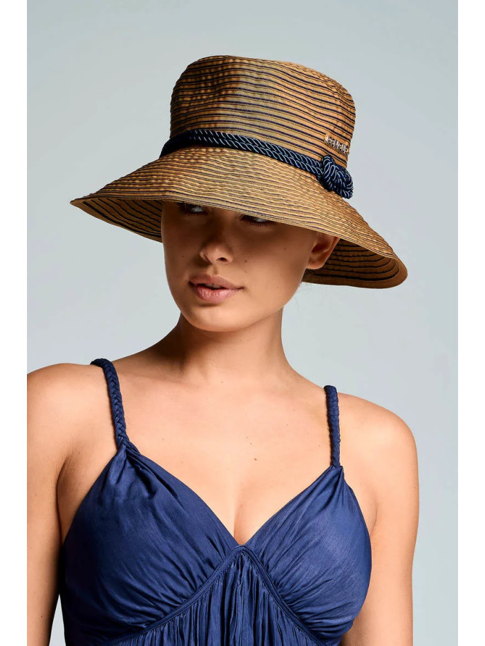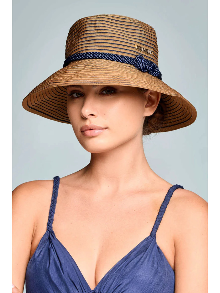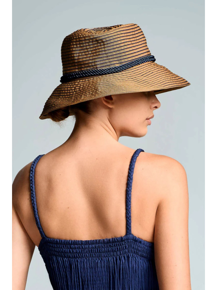 Элегантная соломенная шляпа с широкими полями — идеальный аксессуар для защиты от солнца и создания стильного летнего образа, натуральная текстура с тонкими контрастными полосками придаёт изделию изысканность, декоративная плетёная лента в тёмно-синем оттенке подчёркивает форму и добавляет морское настроение, мягкие поля красиво держат форму и создают выразительный силуэт, обеспечивая комфорт и лёгкость даже в самую жаркую погоду