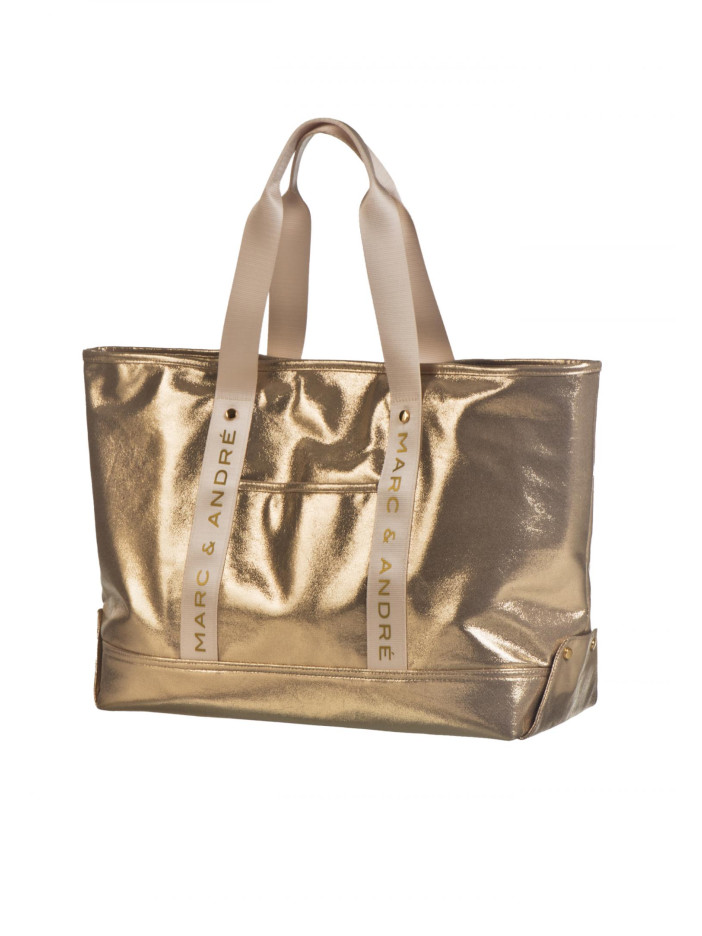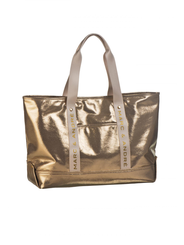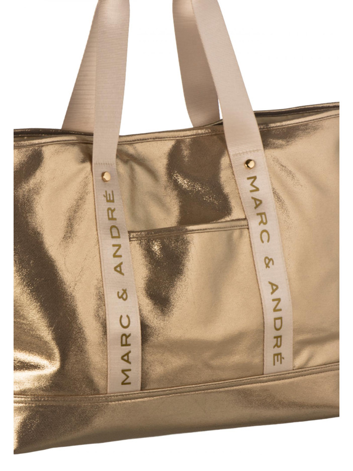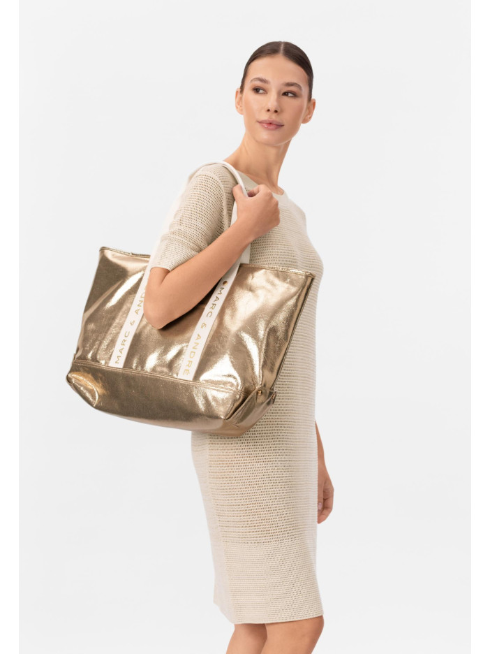 Стильная сумка от Marc & André в эффектном золотистом металлизированном исполнении — это яркий акцент вашего летнего образа: прочная конструкция и удобные широкие ручки обеспечивают комфорт в использовании каждый день, лаконичный дизайн делает модель универсальной, а фирменный логотип на ручках подчёркивает её статусность и премиальный характер, идеально подходит как для пляжа, так и для городских прогулок, добавляя образу нотку роскоши и уверенности.