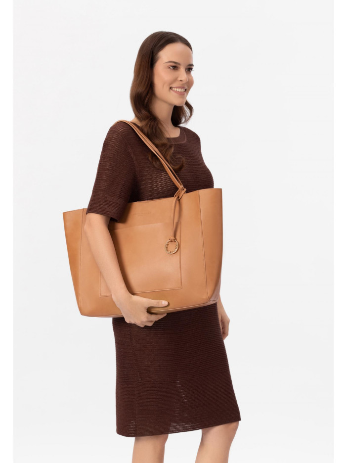 Сумка-тоут — это идеальное сочетание элегантного стиля и премиального качества, которое подчеркнёт ваш вкус с первого взгляда: лаконичный минималистичный дизайн легко впишется в любой образ, фирменный логотип и стильное декоративное кольцо добавляют статусности и характера, а продуманная вместительность делает её не только красивым, но и максимально практичным аксессуаром для города, работы и путешествий.