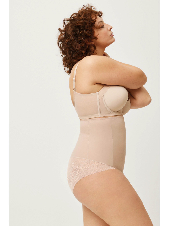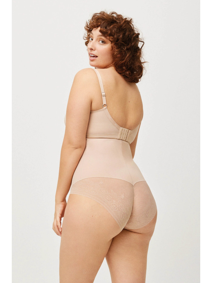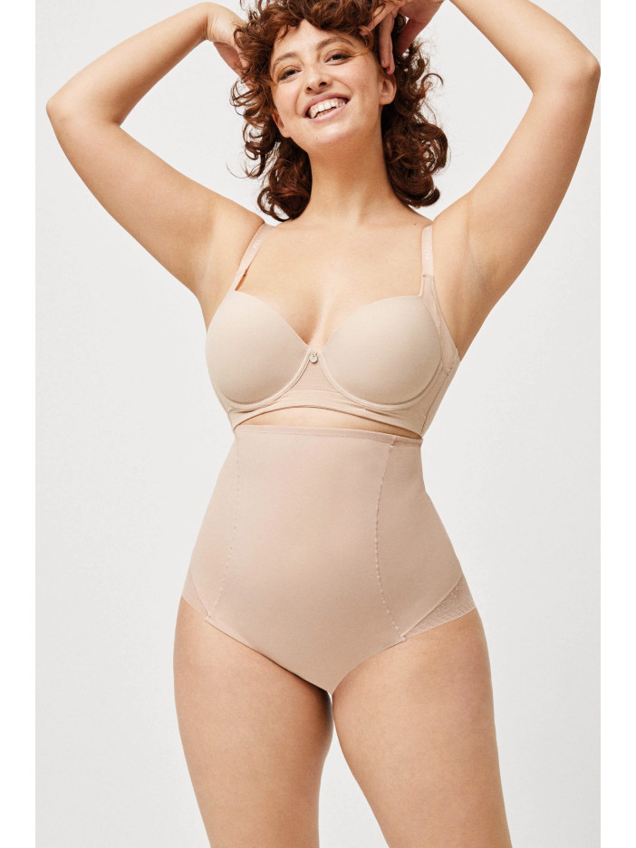 Тілесні шорти-труси з високою талією від Ysabel Mora делікатно формують живіт і талію, створюючи гладкий, підтягнутий силует без зайвих ліній під одягом. Матова еластична передня частина забезпечує м'яку корекцію і візуально струнить, а глибокий чорний колір підкреслює контури фігури і робить модель універсальною для будь-якого гардеробу. Витончена мереживна спинка додає легкості та жіночності, красиво акцентуючи форми та залишаючись комфортною протягом усього дня.
