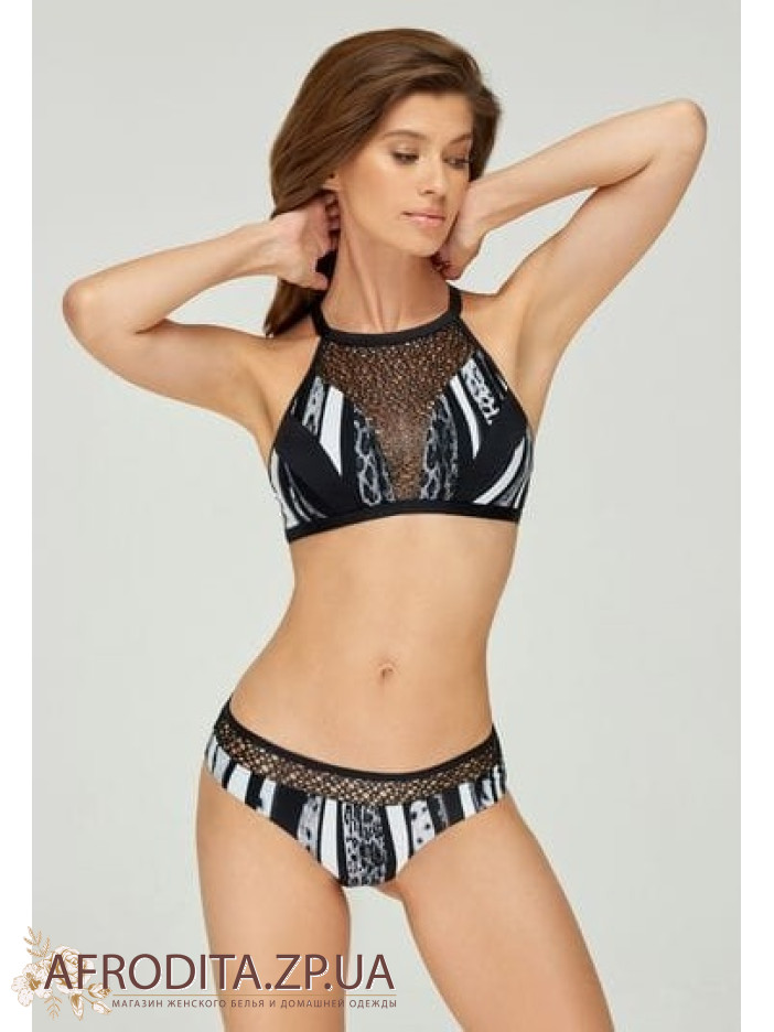М'який топ з тонкими знімнімі коректор, висока горловина. Стильна спинка. Застібка на шії и спіні. Плавки з СЕРЕДНЯ лінією талії.