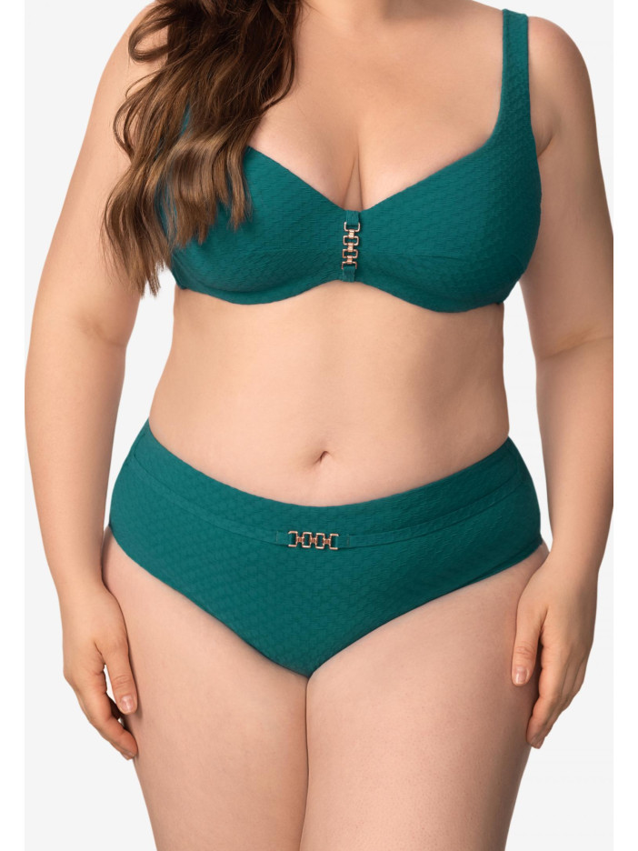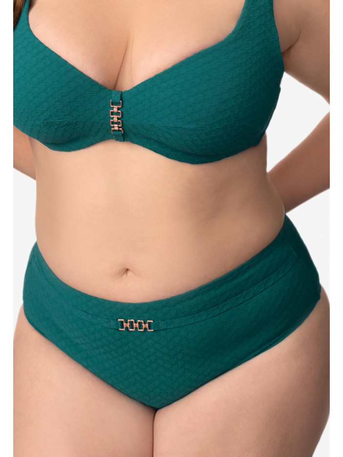 Елегантність і спокійна впевненість з виробами серії QUIET GRACE. Багата жакардова текстура матеріалу піднімає рівень досконалості, забезпечуючи бездоганну форму і комфорт. Ця приваблива серія — справжнє свято стриманої вишуканості, відображення глибини і витонченої грації, яка зачаровує з першого погляду. Бріфи із середньою посадкою м'яко підкреслюють фігуру, створюючи гармонійний і комфортний силует. На передній деталі розташований декоративний пояс із витонченим аксесуаром.