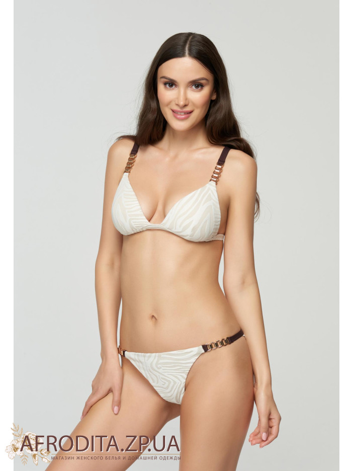 Представляємо серію купальників DESIRE з жакардового полотна - ваш найкращий вибір стильного образу для незабутньої вечірки на пляжі або біля басейну. Естетичну чистоту мінімалізму рельєфного жаккарда і пишність багатої текстури гармонійно доповнюють бретелі контрастного кольору і золоті аксесуари. Зробіть сміливий крок назустріч змінам з нашим ексклюзивним купальником. Верх купальника з формованими трикутними чашками. Знімні вкладиші пуш-ап. Без кісточок. На спині застібка. Бретелі регулюються за довжиною.
