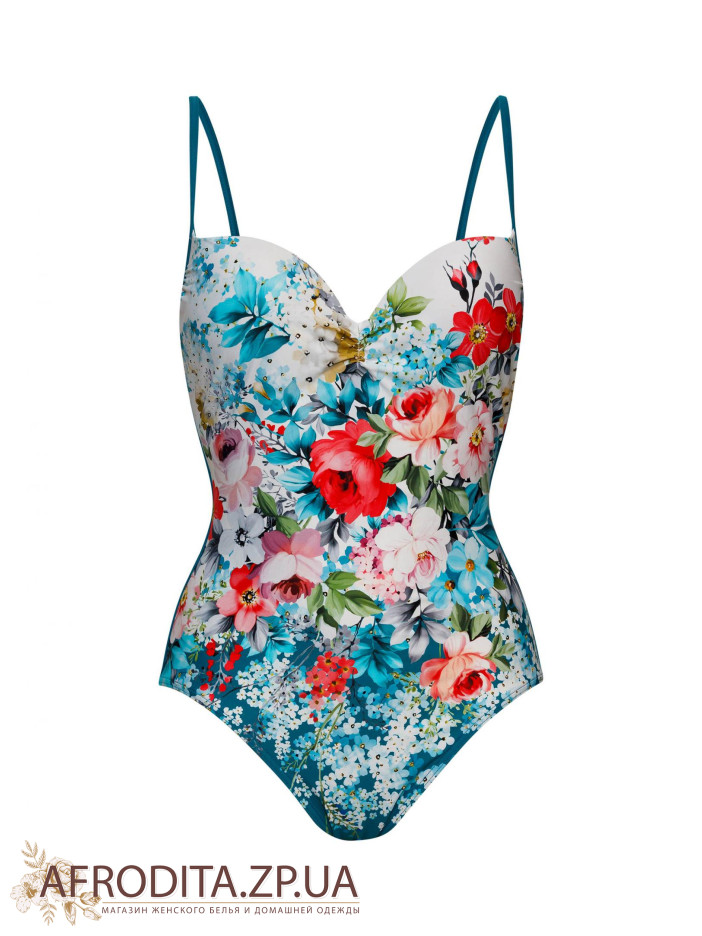 Купальник з формованою чашкою на каркасній підтримці з вбудованим «пуш-ап». Регульовані бретелі. Відкрита спина, на спині є застібка.