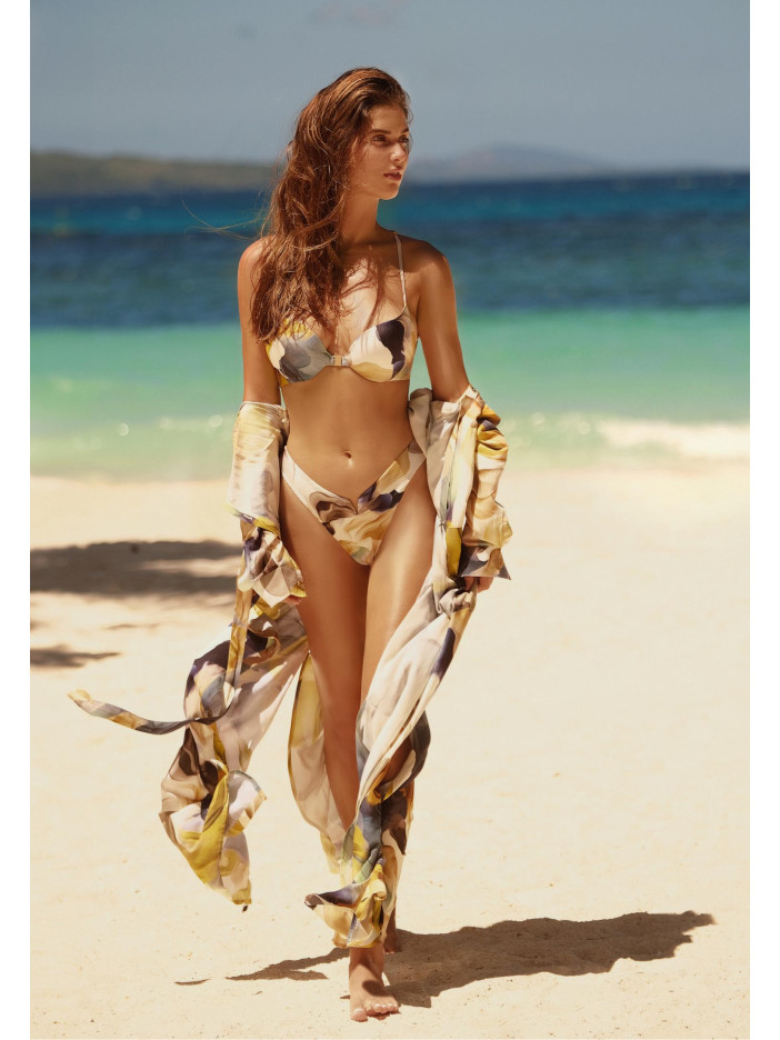 У повній відповідності з назвою серії SYMPHONIE ці моделі відтворюють м’який рух хвиль, що виконують вічну морську симфонію. У центрі уваги — химерний принт, у якому відтінки плавно переходять один в одного в акварельній техніці. Полотном слугує еластичний трикотаж із ніжною тонкою рубчиком текстурою, що м’яко облягає фігуру. Поєднання напівспортивних елементів крою та витонченої лінії декольте підкреслює всі переваги силуету.
