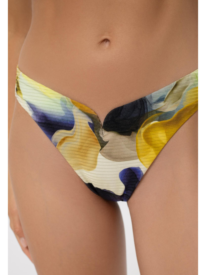 Жіночі плавки-бразиліана із заниженою лінією талії. Фігурний виріз на передній деталі додає грайливості, а підвищений виріз по боках підкреслює лінії стегон, створюючи легкий, елегантний силует.