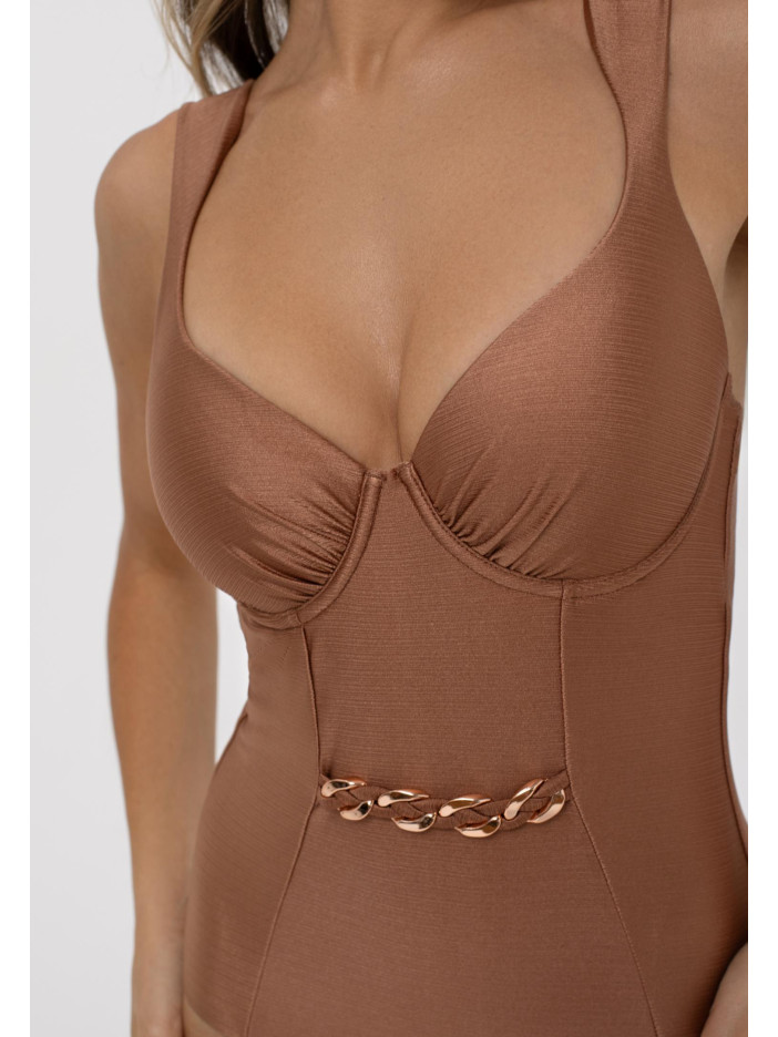 Відкрийте для себе елегантність з купальником SOFT AESTHETIC — моделлю, де мідний відтінок матеріалу з м’яким блиском створює ефект «рідини з металу». Цей модний колір підкреслює тонкий смак та дизайнерське чуття, роблячи образ сучасним і стильним.