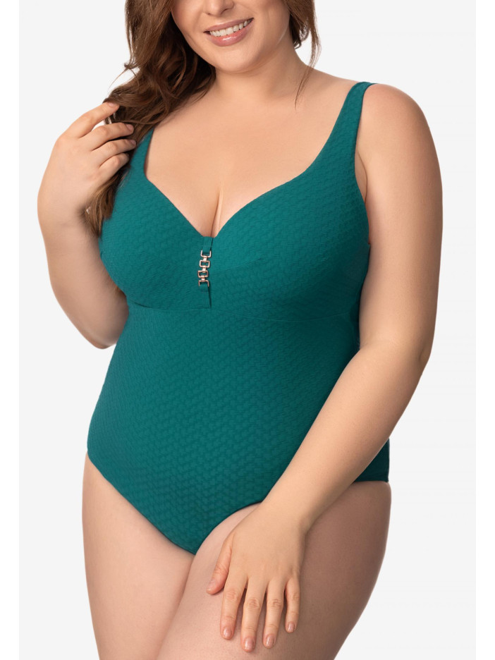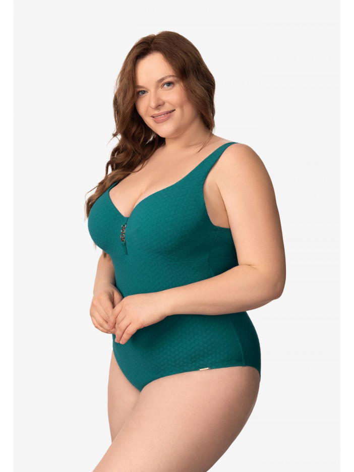 Елегантність і спокійна впевненість з виробами серії QUIET GRACE. Багата жакардова текстура матеріалу піднімає рівень досконалості, забезпечуючи бездоганну форму і комфорт. Ця приваблива серія — справжнє свято стриманої вишуканості, відображення глибини і витонченої грації, яка зачаровує з першого погляду. Купальник з формованою чашкою на каркасній підтримці. Між чашками розташований витончений аксесуар. Широкі регульовані бретелі з поролоновою вставкою забезпечують комфорт і надійну підтримку, а кругла спинка створює стильний і гармонійний силует.