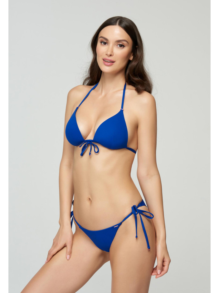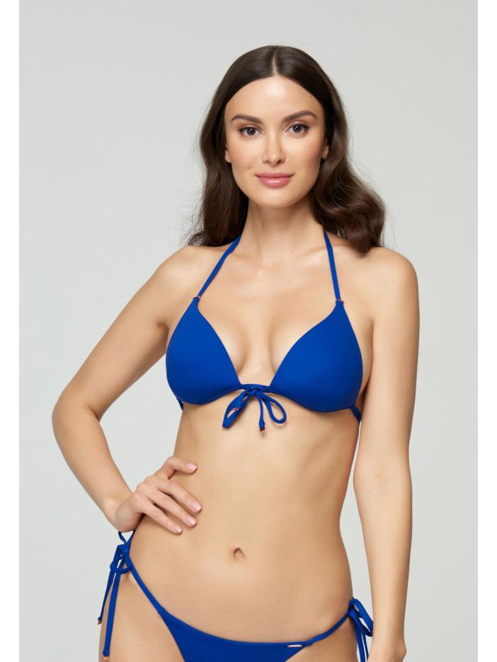 Трикутні формовані чашки без кісточок із знімними пуш-ап вкладишами красиво підкреслюють груди та дозволяють регулювати об’єм. Зав’язки на шиї додають жіночності, а регулювання по центру допомагає змінювати відстань між чашками для ідеальної посадки. Застібка на спині на маленький гачок робить модель зручною та практичною. Ідеальний вибір для легкого, впевненого та спокусливого образу.