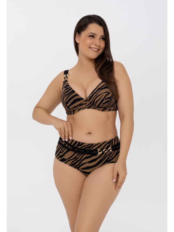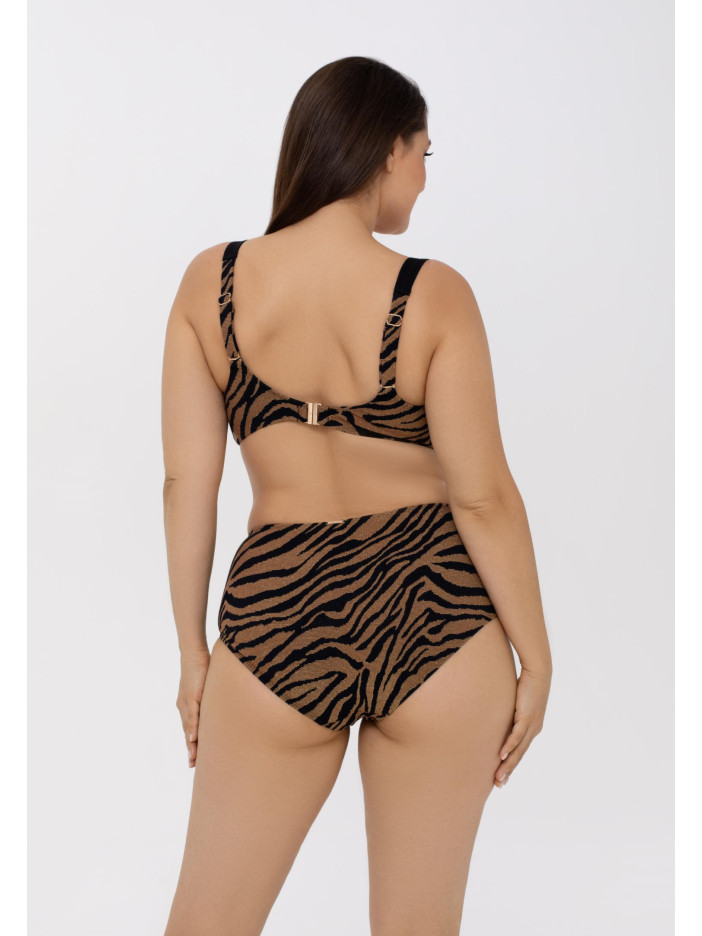 Хижий та чарівний — серія DARK GLOW не залишить байдужою жодну модницю. Гіпнотичний ефект досягається завдяки об’ємній текстурі матеріалу, ретельно підібраним природним відтінкам і золотистій нитці, що переливається як на сонці, так і у місячному світлі. Ультрам’яка, високоеластична тканина з екологічних матеріалів точно повторює форми тіла, ніжно облягаючи вигини. Верх купальника з м’якою чашкою на кісточках ідеально підходить власницям пишної грудей. Бретелі-спагетті регулюються по довжині та декоровані стильними аксесуарами, застібка на спині забезпечує зручність і надійну посадку. DARK GLOW — гармонія комфорту, розкоші та заворожуючого блиску.