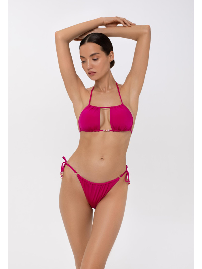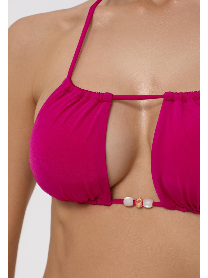 Рожева лихоманка захоплює моду — і ми радимо насолоджуватися! Яскрава фуксія серії CANDY створює настрій літа та безтурботності. Верх купальника з м’якою трикутною чашкою і знімними коректорами підкреслить форму, зав’язки навколо шиї з намистинами та регульований об’єм під грудьми забезпечують ідеальну посадку та комфорт. Грайливість і стиль у кожній деталі!