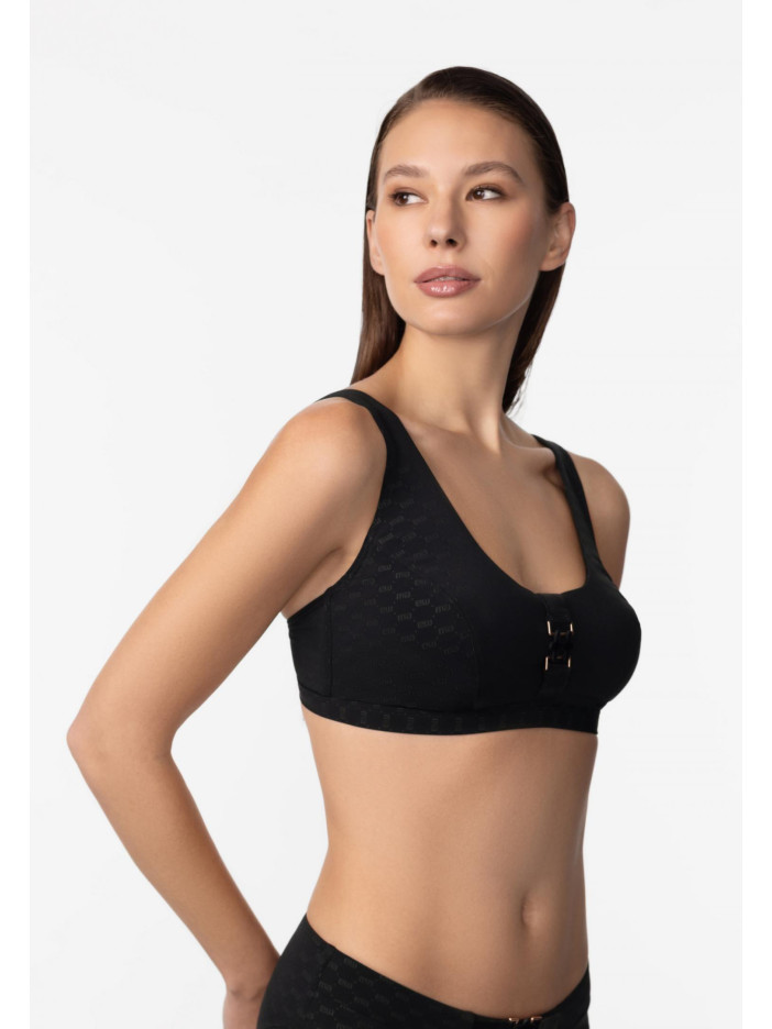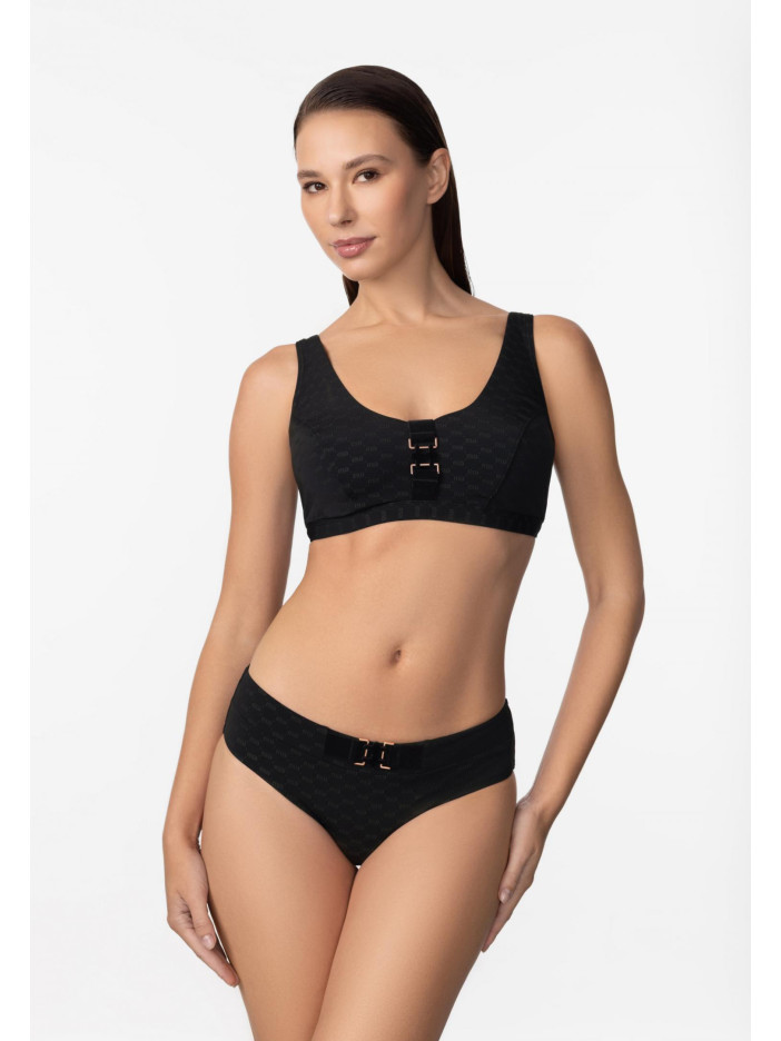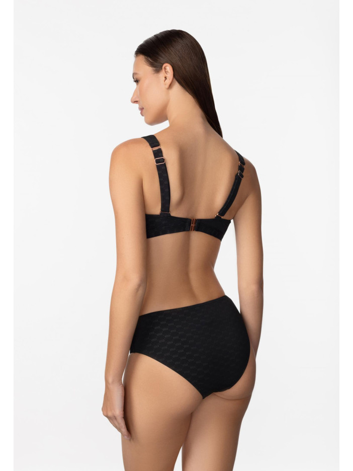 Розкіш, комфорт і бездоганна підтримка — купальник із вишуканої жакардової серії LUXURY FRAGRANCE від Marc & André створений для впевнених та елегантних образів. Класичний чорний колір у поєднанні з фірмовим логотипом і оксамитовими вставками підкреслює жіночність і додає витонченості. Інноваційна підкладка з мікрокапсулами, наповненими екстрактом чайного дерева, делікатно доглядає за шкірою та дарує відчуття свіжості протягом усього дня. М’які чашки на каркасній підтримці забезпечують надійну фіксацію та максимальний комфорт, ідеально підходячи для власниць пишних форм. Декоративний аксесуар по центру додає елегантного акценту, а широкі регульовані бретелі та зручна застібка на спині гарантують ідеальну посадку та впевненість у кожному русі.
