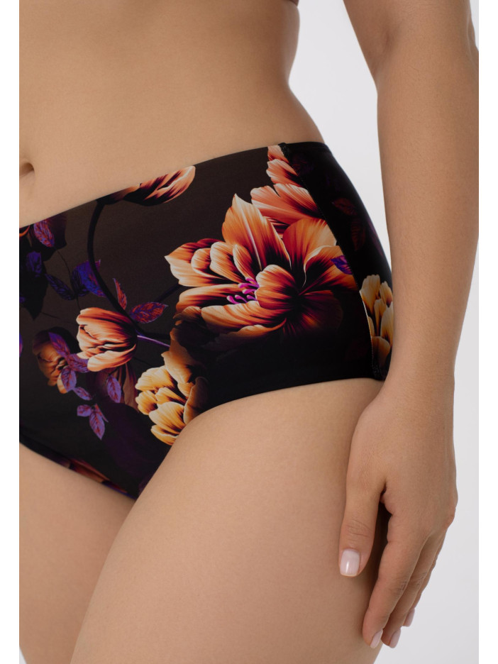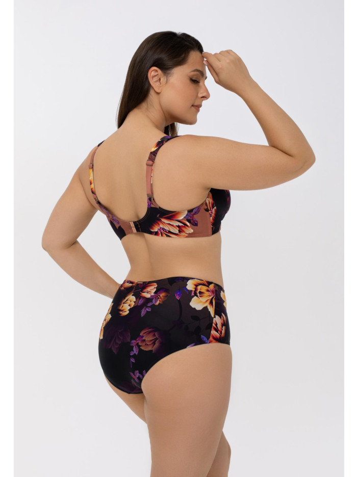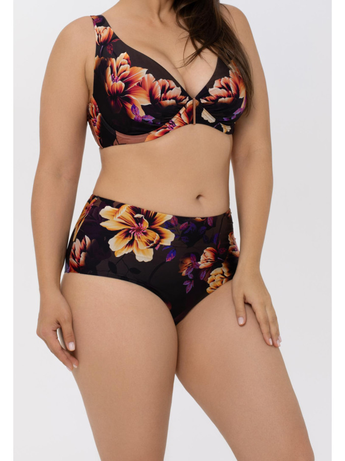 Додайте образу витонченості з плавками FLOWER MANIA — багатошаровий флористичний принт від італійських художників розкриває красу шипшини, тюльпанів і троянд на теплому теракотовому фоні. Лілова підкладка та аксесуари кольору рожевого золота створюють м’який і елегантний контраст.