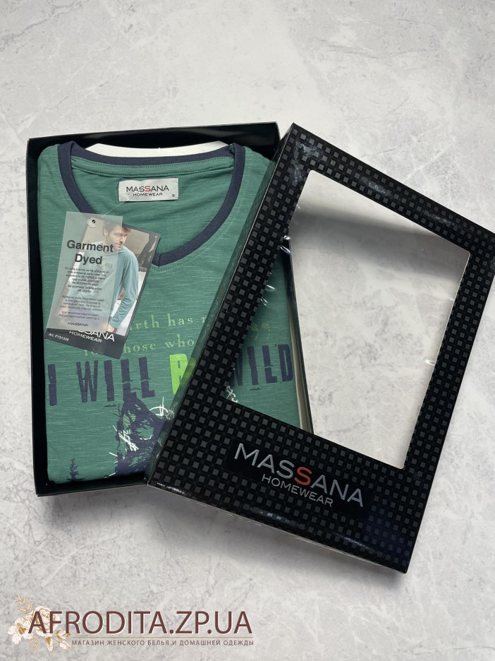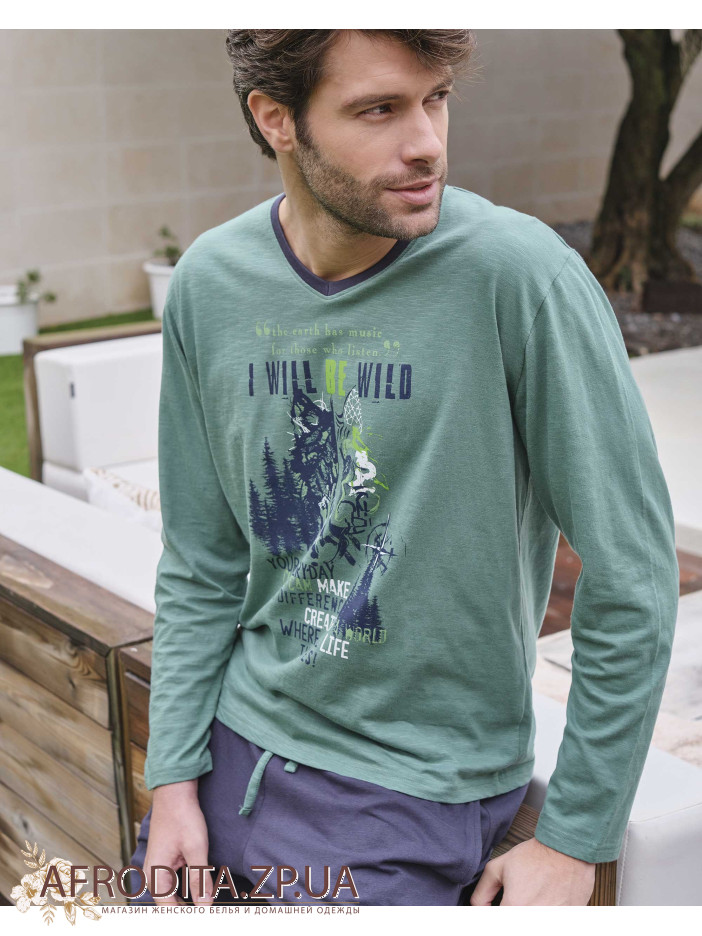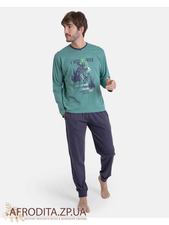 Чоловіча піжама зі штанами Massana P731328 з натуральної бавовни. Комплект складається з кофти з довгим рукавом та штанів прямого крою з бічними кишенями.